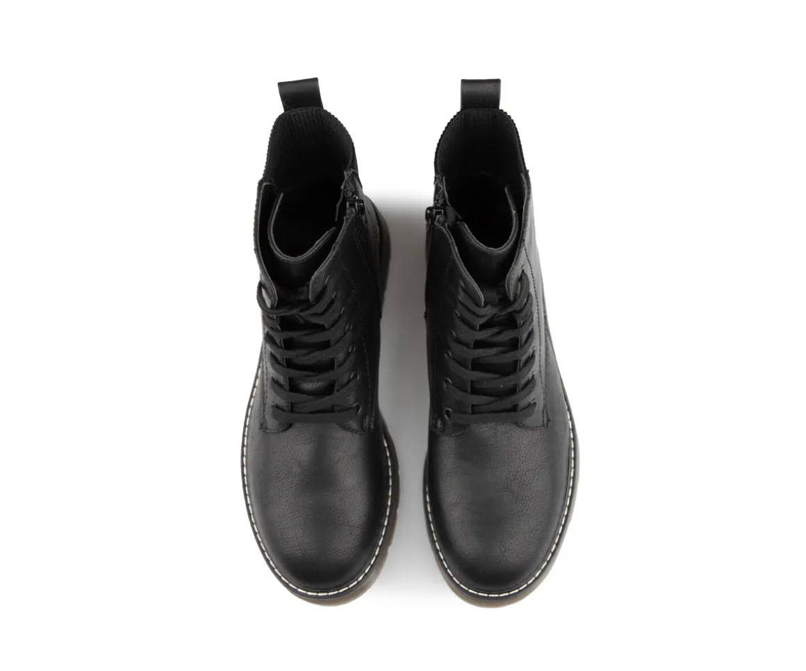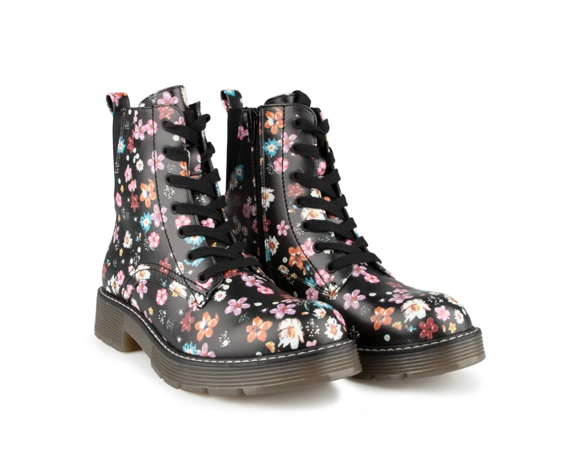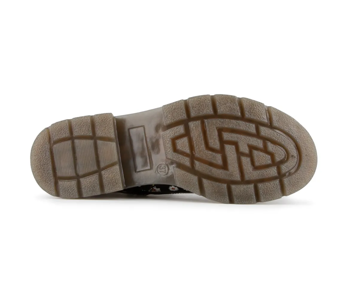 Ces bottillons courts Alberto pour femmes sont lacés et munis d’une fermeture éclair intérieure pour un enfilage facile. Avec un talon plat et une empeigne en cuir synthétique combinée à un élastique, ils assurent un confort tout au long de la journée. La semelle intérieure en feutre offre un bon amortissement, tandis que la semelle extérieure en TPR transparent ajoute une touche moderne et assure une durabilité accrue. Ces bottillons sont idéals pour une utilisation quotidienne.