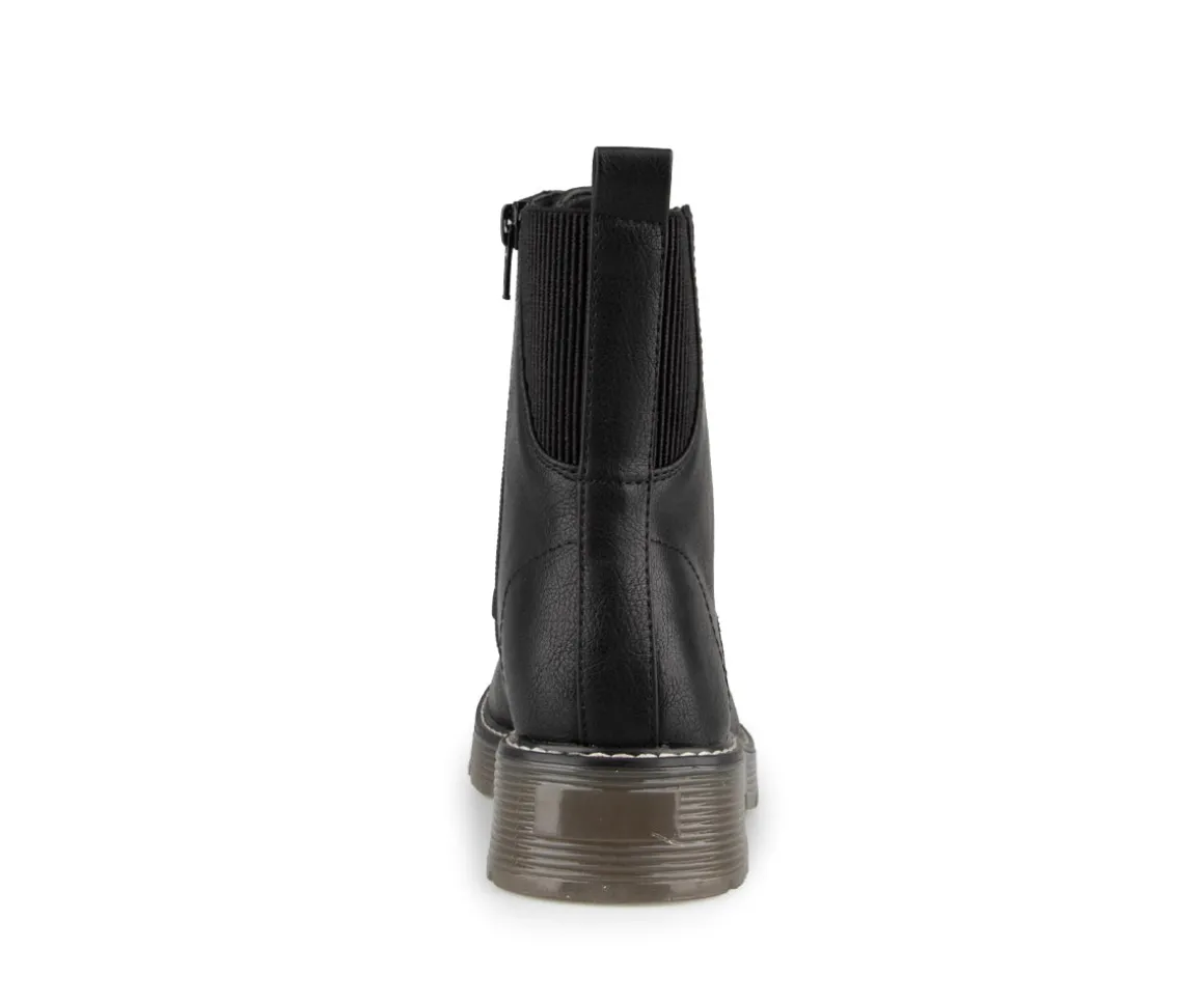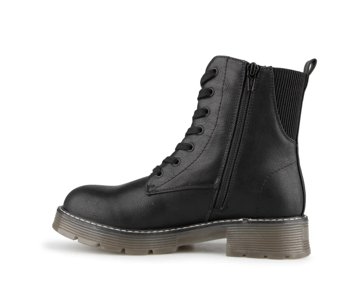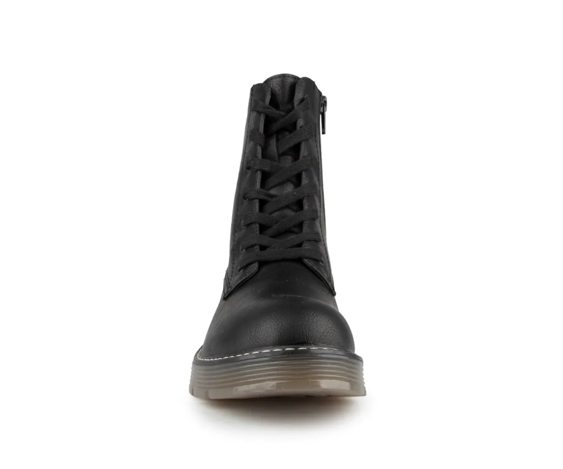 Ces bottillons courts Alberto pour femmes sont lacés et munis d’une fermeture éclair intérieure pour un enfilage facile. Avec un talon plat et une empeigne en cuir synthétique combinée à un élastique, ils assurent un confort tout au long de la journée. La semelle intérieure en feutre offre un bon amortissement, tandis que la semelle extérieure en TPR transparent ajoute une touche moderne et assure une durabilité accrue. Ces bottillons sont idéals pour une utilisation quotidienne.