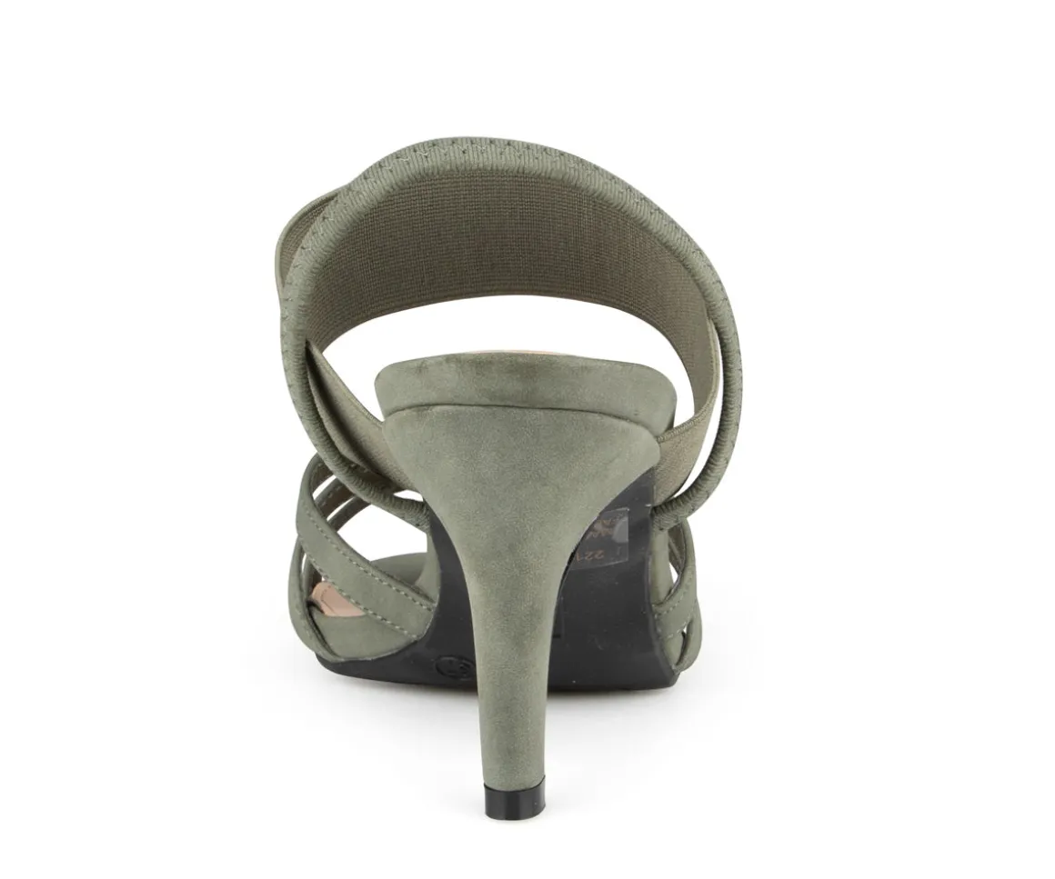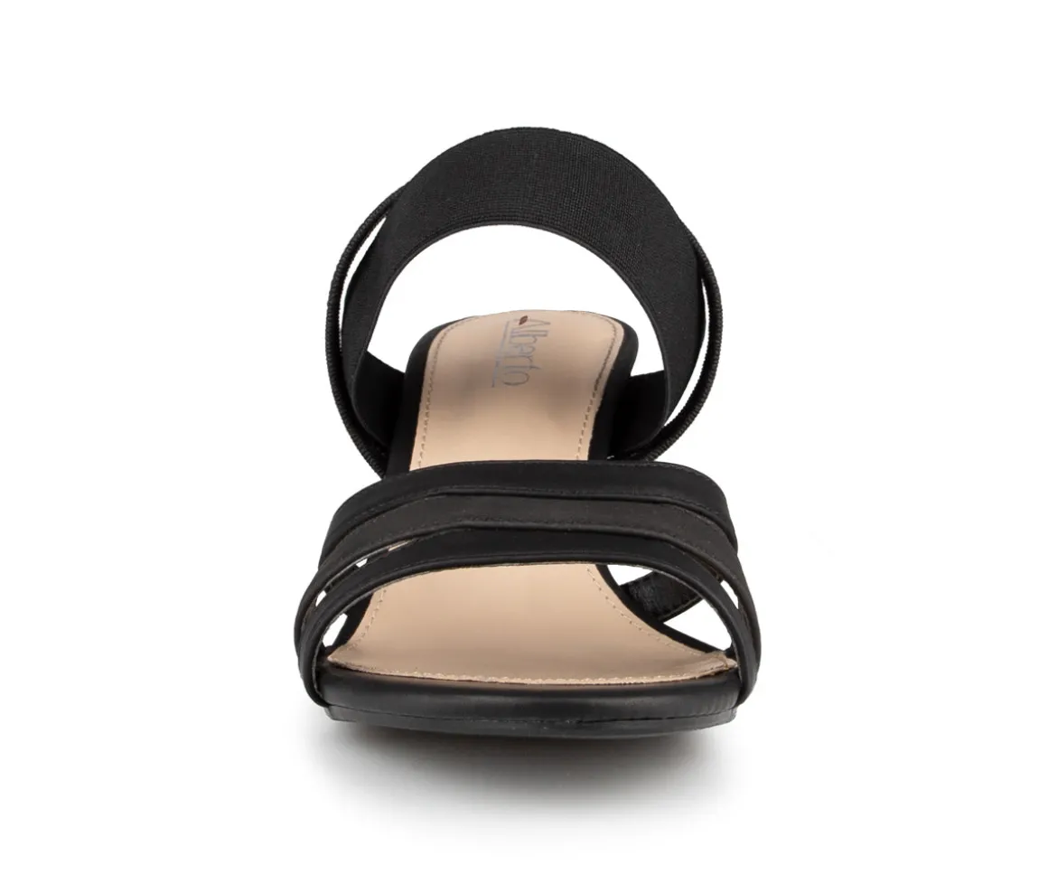 Sandale à talon Alberto pour femme avec empeigne élastique. Ces sandales sont parfaites pour les occasions spéciales comme les mariages, les galas ou les soirées cocktail.