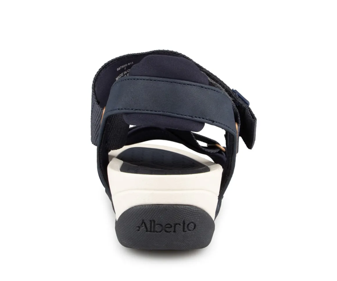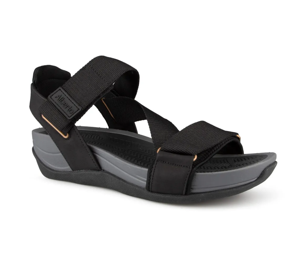 Sandale Alberto pour femme à talon compensé avec courroie à velcro. Elles sont idéales pour les promenades en ville ou à la campagne avec sa semelle en caoutchouc résistante pour une bonne adhérence et des sangles ajustables pour un confort personnalisé.