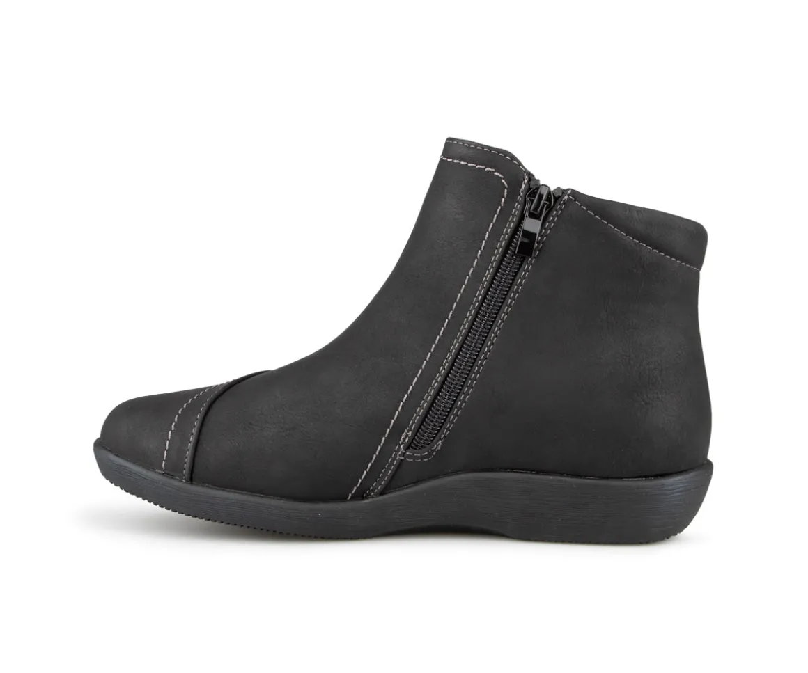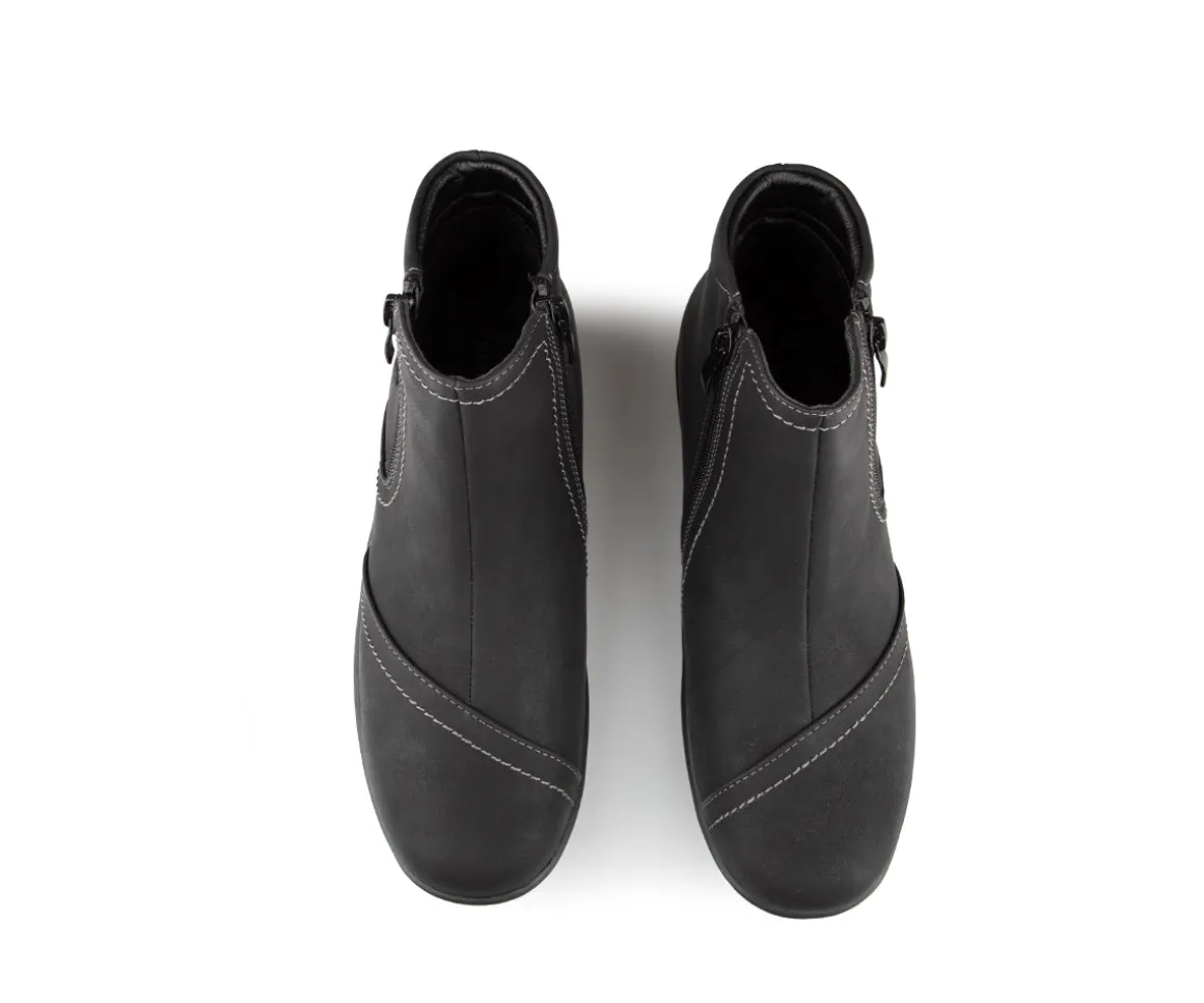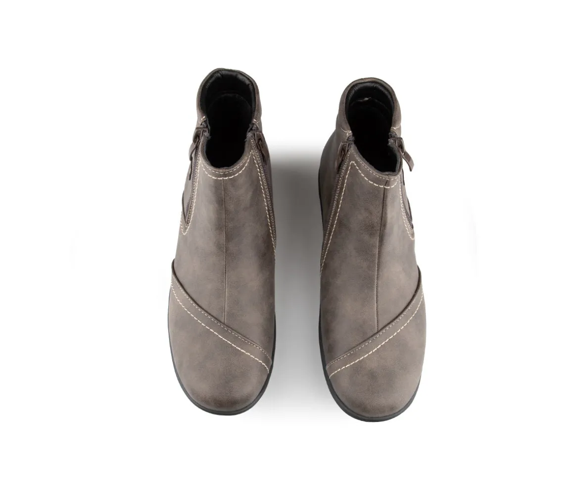 Ces bottillons courts Ultime Confort pour femmes sont conçus pour allier élégance et confort. Munis d’une fermeture éclair YKK pour un enfilage facile, ils sont dotés d’une empeigne en cuir synthétique avec une jolie décoration florale assortie, ajoutant une touche de style unique. La doublure en imitation fourrure ultra douce assure chaleur et confort. Leur semelle intérieure amovible offre un soutien personnalisé, tandis que la semelle extérieure en TPR garantit une durabilité et une adhérence maximales.