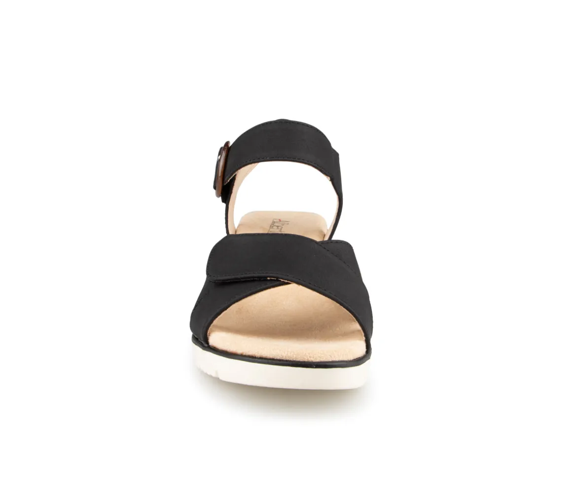 Ces sandales Alberto pour femmes en cuir synthétique sont équipées de deux velcros sur l’empeigne, assurant un ajustement personnalisé et sécurisé. Avec une largeur B, elles offrent un confort optimal pour vos journées estivales. Le talon compensé de 2.5 pouces ajoute une touche d’élégance tout en maintenant un bon amorti. Une combinaison parfaite de style, confort et praticité pour vos tenues estivales.
