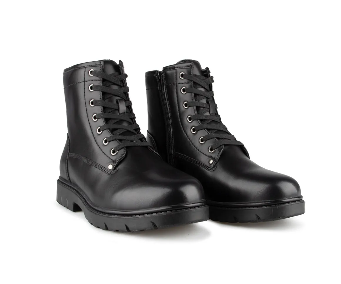 Les bottillons Manathan pour hommes allient robustesse et confort pour affronter les rigueurs de l’hiver. Fabriqués en cuir synthétique, ils sont dotés d’une doublure en fourrure de 800G qui assure une bonne isolation thermique. La fermeture éclair intérieure facilite l’enfilage, et la semelle intérieure amovible en feutre avec fibre WP offre un confort supplémentaire et une protection contre l’humidité. La semelle extérieure en caoutchouc garantit une adhérence solide sur les surfaces glacées.