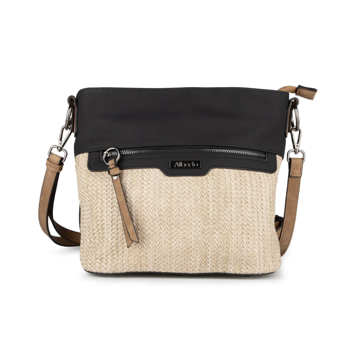Avec son mélange raffiné de cuir synthétique et de paille beige, ce sac à main Alberto ajoute une touche de fraîcheur à votre tenue. Il est doté d’un grand compartiment avec fermeture éclair pour garder vos essentiels bien organisés. Sa bandoulière amovible et réglable vous permet de le porter à l’épaule ou à la main, selon votre style du moment.