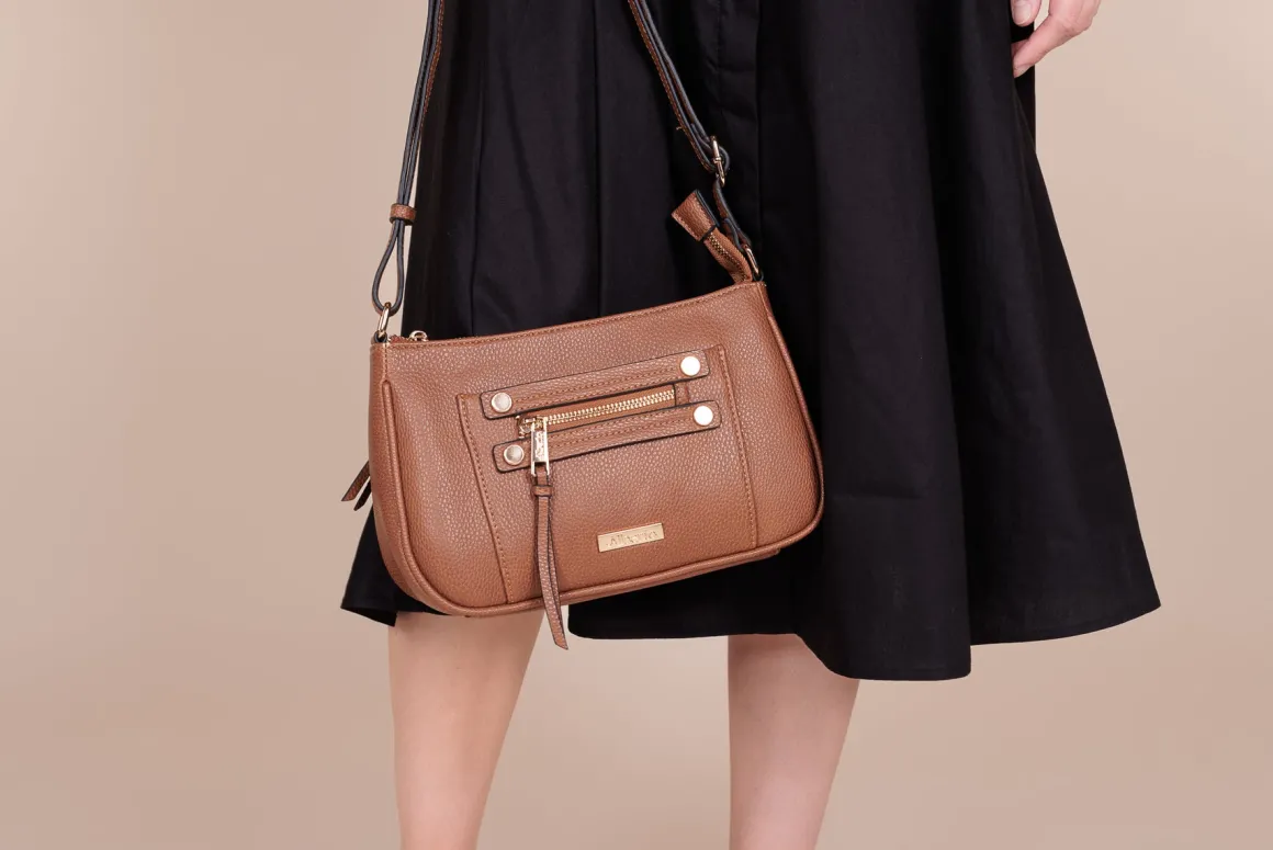 Ajoutez une touche chic à votre look avec le sac à main Alberto. Son joli pendentif décoratif et son cuir synthétique de qualité en font l’accessoire idéal. Ses trois compartiments sécurisés et sa bandoulière réglable offrent confort et rangement optimal.