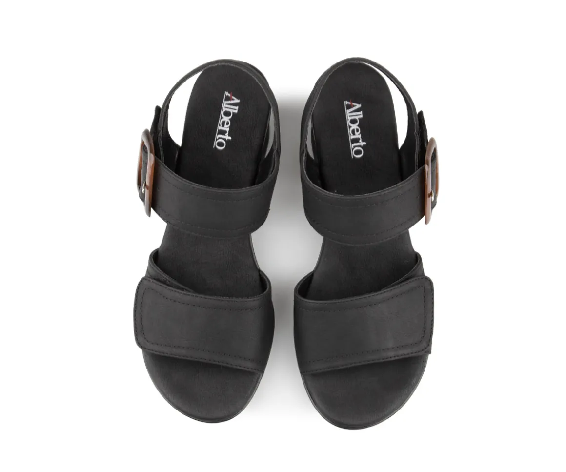 Ces sandales Alberto pour femmes en cuir synthétique sont dotées de deux velcros pratiques sur l’empeigne, offrant un ajustement personnalisé et sécurisé. Elles présentent un talon moyen de 2,25 pouces, parfait pour ajouter une touche d’élégance sans compromettre le confort. Leur semelle intérieure en polyuréthane (PU) offre un amorti de qualité, idéal pour les sorties en ville ou pour une journée de travail au bureau.