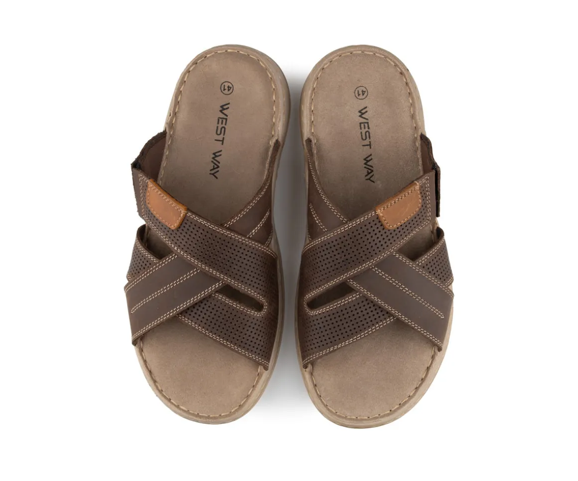 Parfaites pour les journées chaudes, ces sandales en cuir West Way offrent un mélange de style et de confort. Leur design à courroies croisées assure un bon maintien du pied, tandis que la semelle intérieure en cuir de vache procure une sensation douce et naturelle. La semelle extérieure en PU garantit une bonne adhérence et une durabilité optimale.