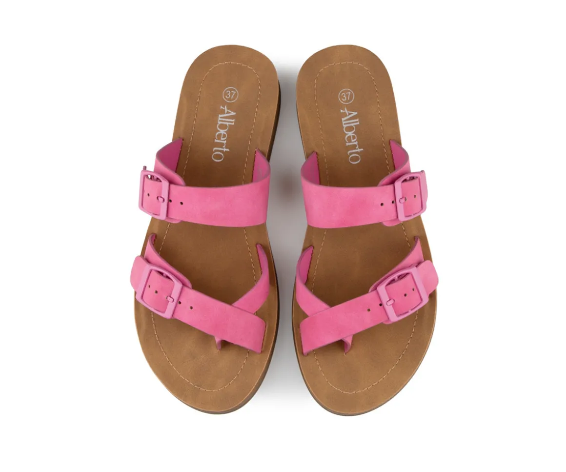 Parfaites pour les journées ensoleillées, ces sandales mule Alberto pour femme combinent style et confort. Conçues en cuir synthétique, elles présentent un sangle d’orteil qui ajoute une touche distinctive à votre look. Leur semelle en PU avec bon amorti assure un confort optimal tout au long de la journée, tandis que leur talon plat permet une démarche naturelle et détendue.