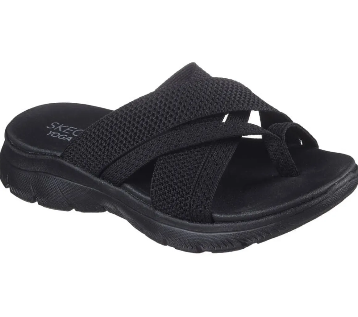 Ces sandales Skechers pour femmes allient douceur, style et maintien avec leur conception Stretch Fit® qui épouse le pied comme une chaussette. L’empeigne tissée à sangles multiples, incluant une boucle à l’orteil, offre un maintien léger et élégant. La semelle intérieure Yoga Foam® procure un confort moelleux à chaque pas, tandis que la semelle extérieure antidérapante et flexible assure une excellente stabilité. Confectionnées à partir de matériaux 100 % végétaliens, elles sont parfaites pour les journées actives où le confort est roi.