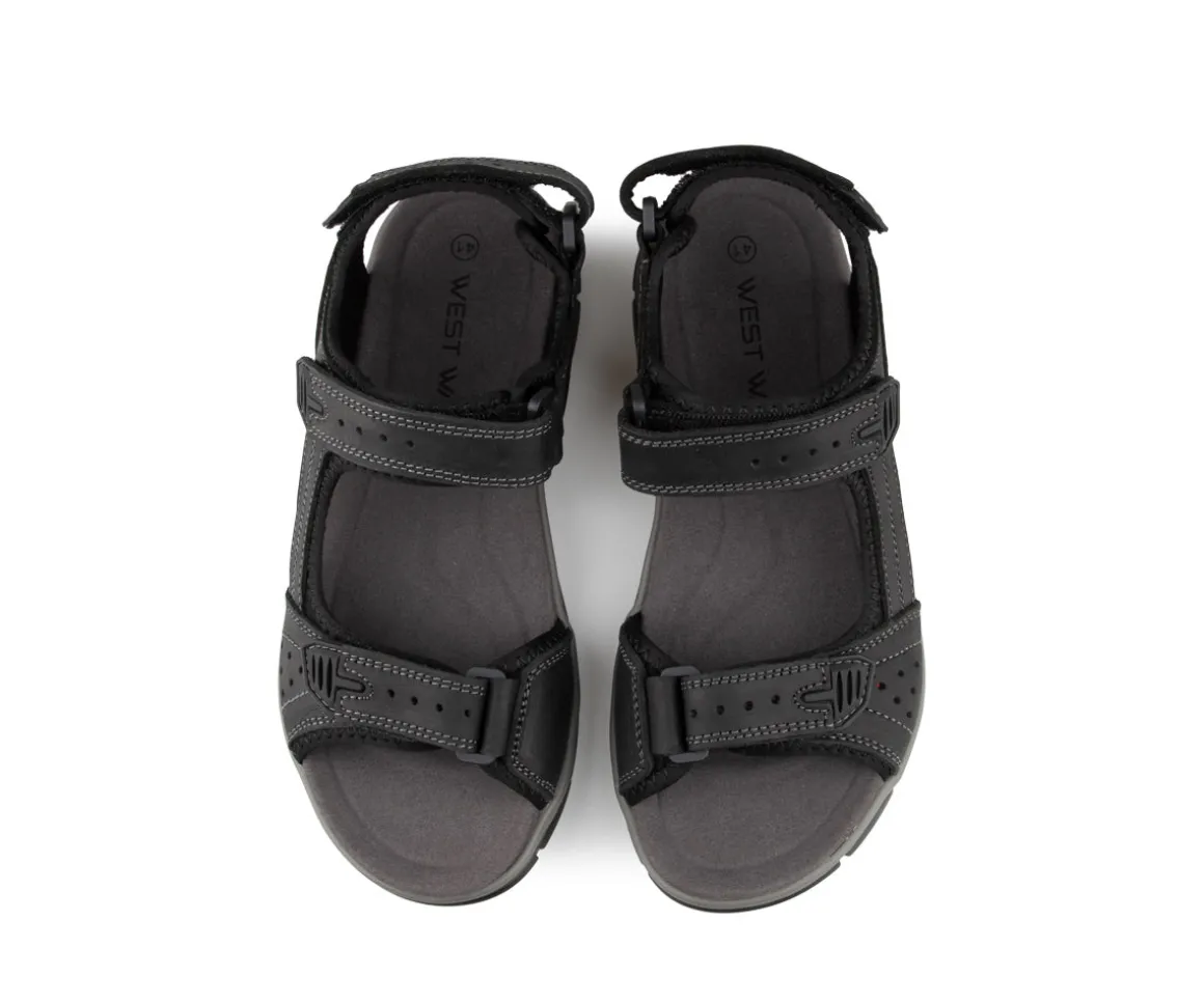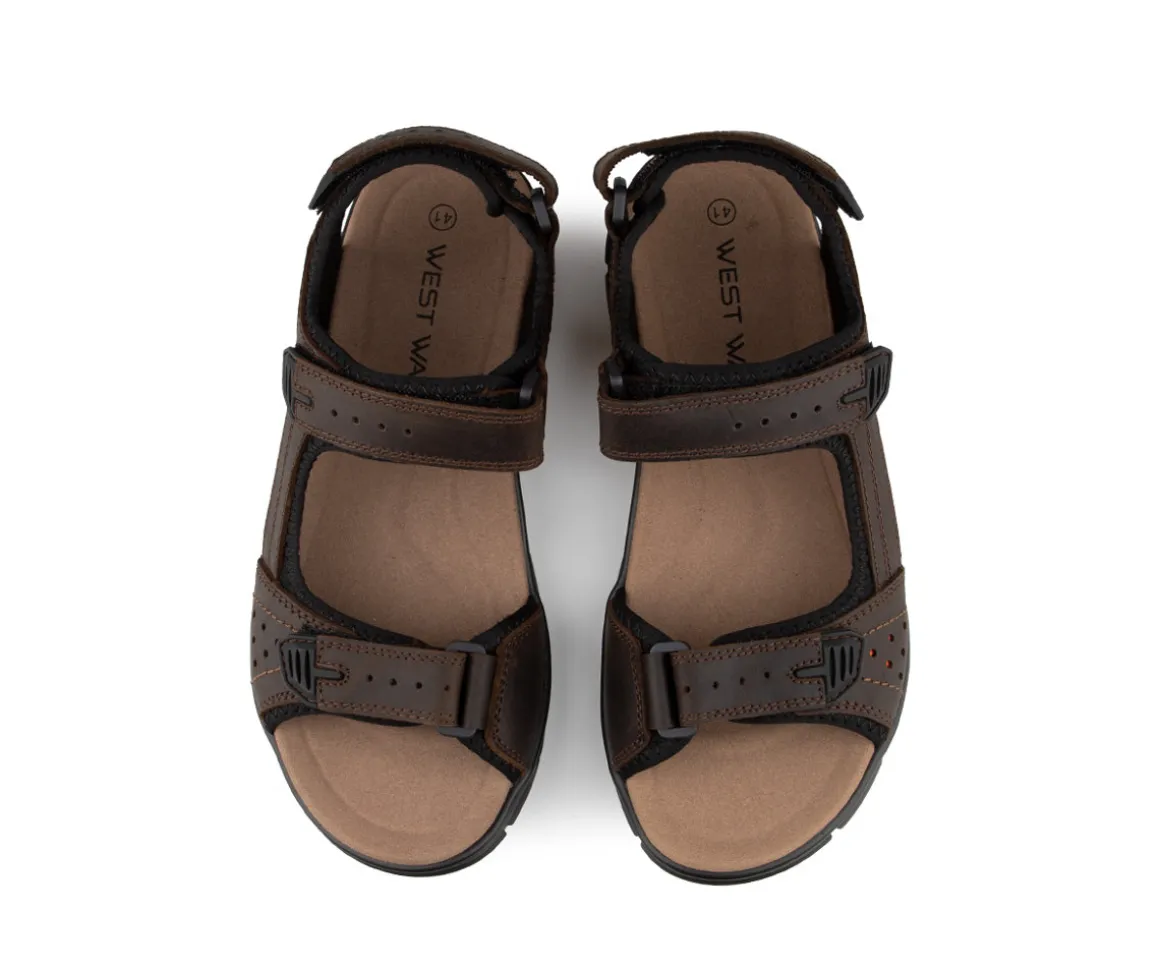 Ces sandales sport West Way pour hommes sont conçues pour offrir un confort optimal et un maintien ajustable grâce à leurs trois sangles Velcro. Fabriquées en cuir de qualité, elles assurent durabilité et souplesse. Leur semelle extérieure en PU garantit une bonne adhérence et une légèreté idéale pour les journées actives.