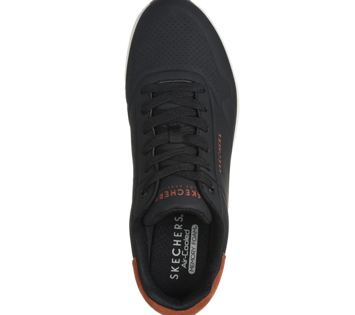 Ce soulier Skechers pour hommes allie look sportif et technologie de confort. Son empeigne en cuir durable avec garniture en suède offre un style raffiné, tandis que la semelle intercalaire Skech-Air® avec coussin d’air visible procure un excellent amorti. La semelle intérieure Skechers Air-Cooled Memory Foam® assure un confort respirant, et la semelle extérieure antidérapante flexible offre une bonne stabilité à chaque pas.