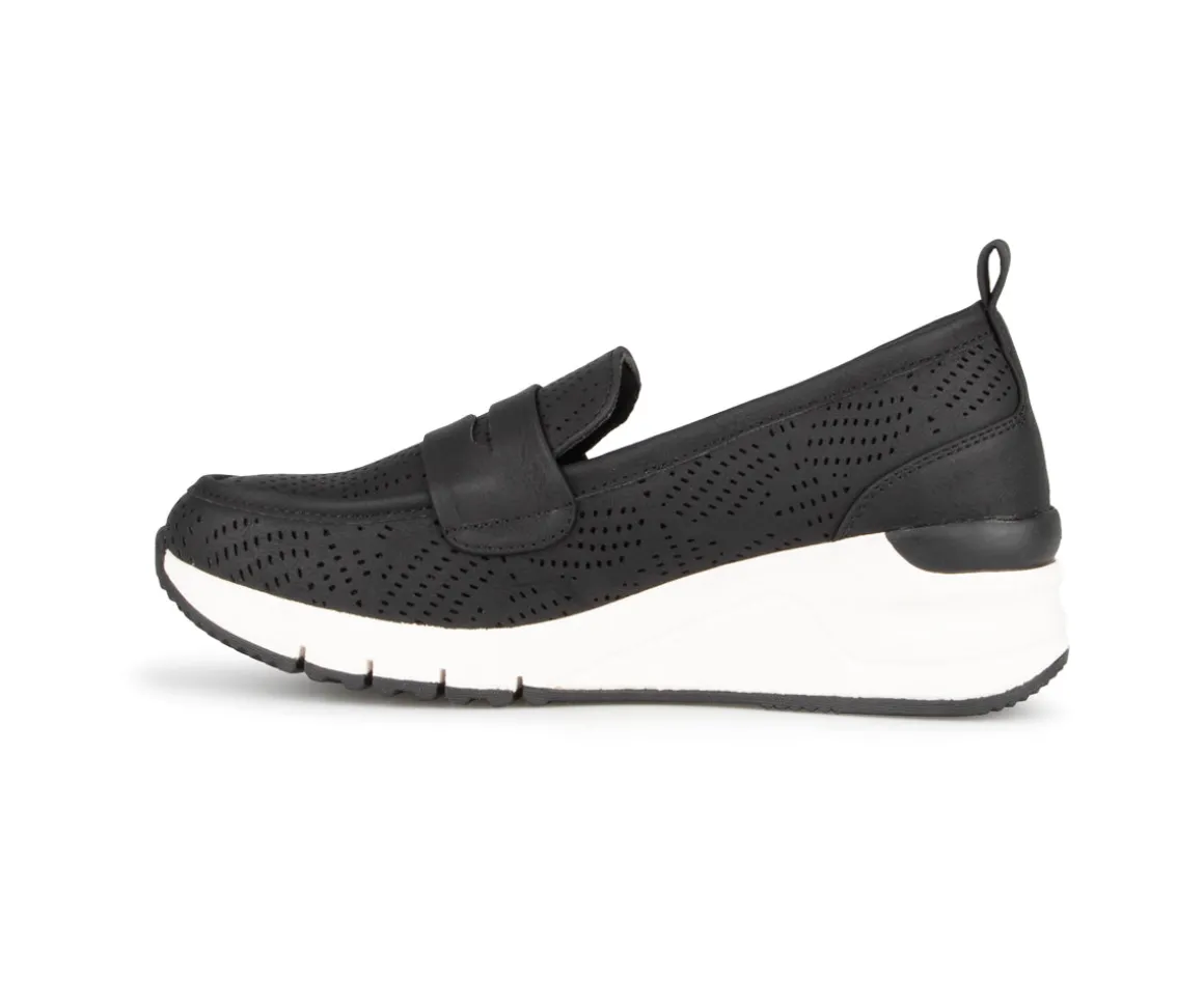 Ces souliers à enfiler Alberto pour femme allient style et confort avec leur talon compensé de 2 pouces. Fabriqués en cuir synthétique perforé et cuir, ils offrent une respirabilité optimale tout en restant élégants. La semelle intérieure amovible et la semelle Tamaris en EVA-caoutchouc assurent un amorti exceptionnel pour un confort prolongé. Un choix parfait pour les journées actives sans compromettre le style.