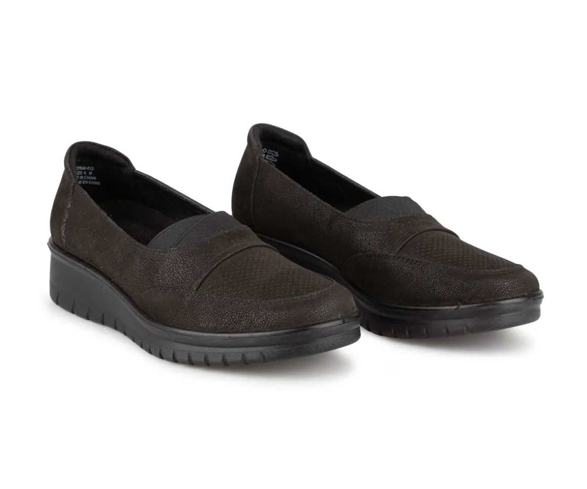 Pensés pour un confort optimal, ces souliers à talon compensé combinent cuir synthétique et élastique pour un ajustement souple et stable. La semelle intérieure amovible en cuir synthétique offre un bon soutien, tandis que la semelle extérieure en PU procure légèreté et durabilité. Un modèle polyvalent et confortable, parfait pour vos journées actives.