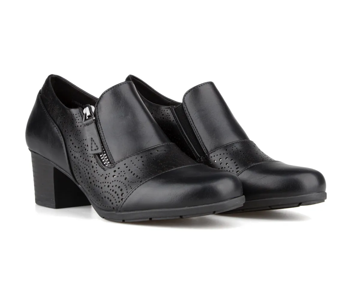 Alliez élégance et confort avec les souliers à talon haut Ultime Confort pour femmes. Fabriqués en cuir synthétique et cuir synthétique perforé, ils offrent une semelle intérieure en microfibre douce et une semelle extérieure en TPR antidérapante pour un port agréable toute la journée.