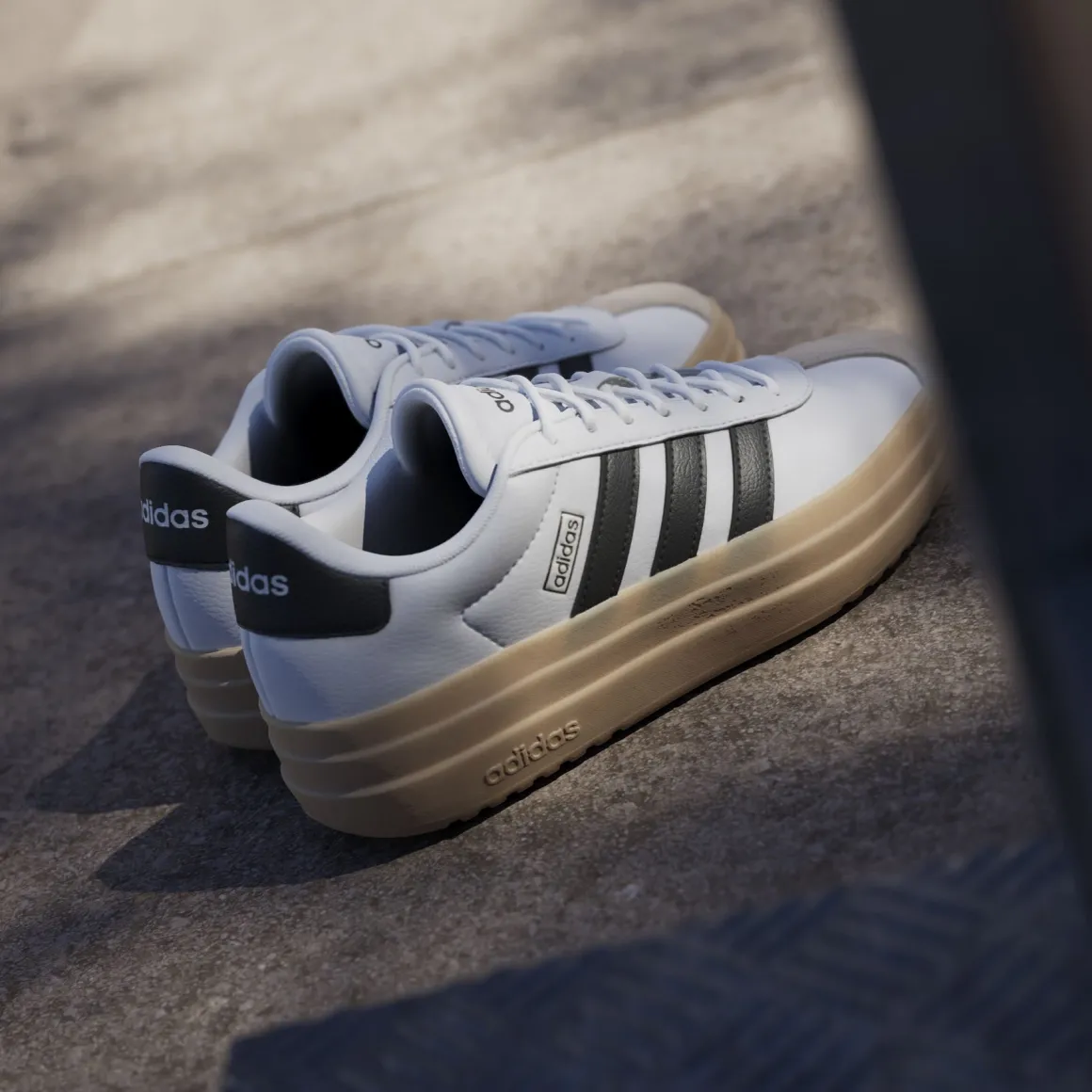Les chaussures Adidas VL Court Bold pour femme combinent élégance et confort avec leur tige en cuir et leur semelle extérieure en caoutchouc. Parfaites pour une utilisation quotidienne, elles offrent un look classique et intemporel.