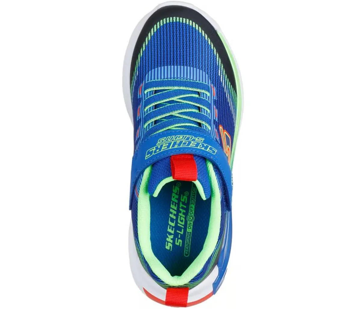 Ces souliers Skechers lumineux allient style dynamique et fonctionnalité. Conçus avec une empeigne en maille respirante et en matériau synthétique à imprimé haptique, ils offrent un look moderne et une grande liberté de mouvement. Grâce aux lacets extensibles, à la bande velcro et à la fermeture adaptative Skechers, l’enfilage est rapide et la tenue parfaite. La semelle intercalaire à lumières au motif géométrique, activée par un bouton marche/arrêt, ajoute une touche éclatante à chacun de ses pas.