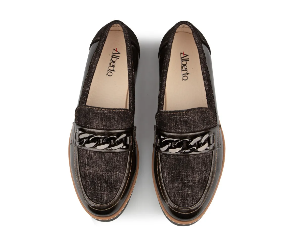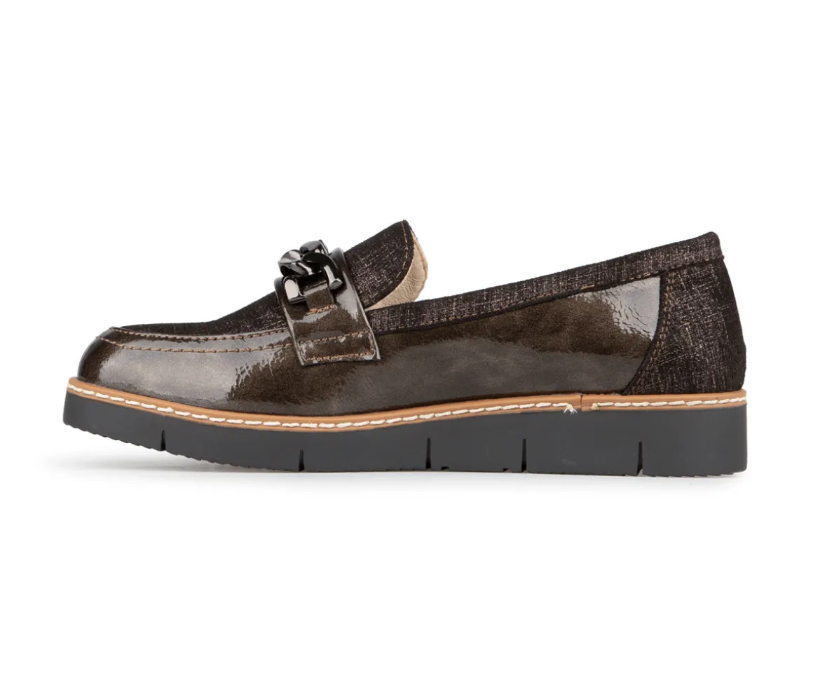 Ces mocassins pour femmes allient allure chic et confort pratique. Confectionnés en PU verni froissé avec une touche métallique, ils apportent une finition raffinée à vos tenues. La semelle extérieure en TPR assure une bonne adhérence au sol, tandis que la doublure et la semelle intérieure en PU offrent un chaussant agréable du matin au soir.