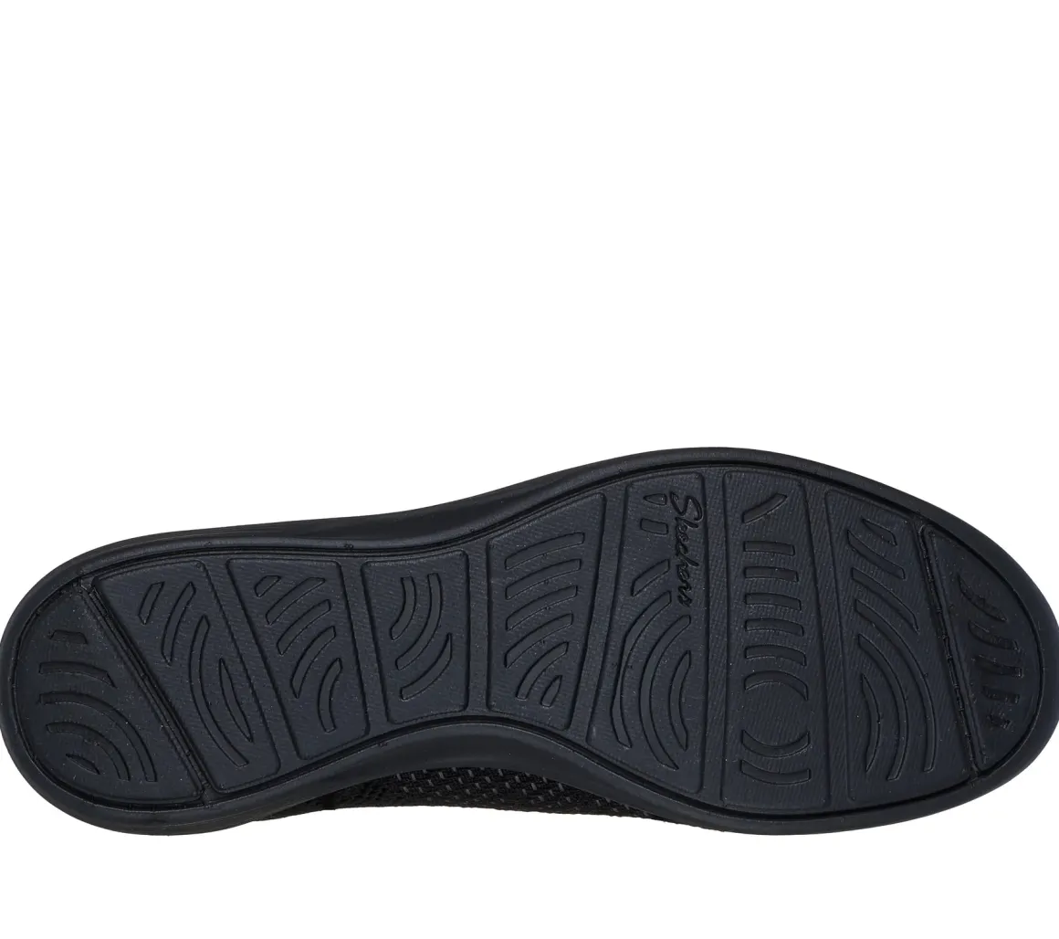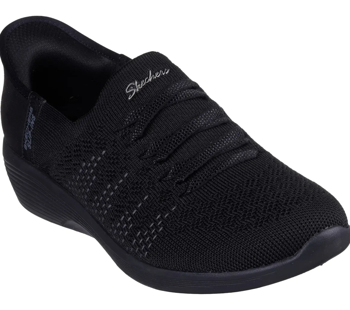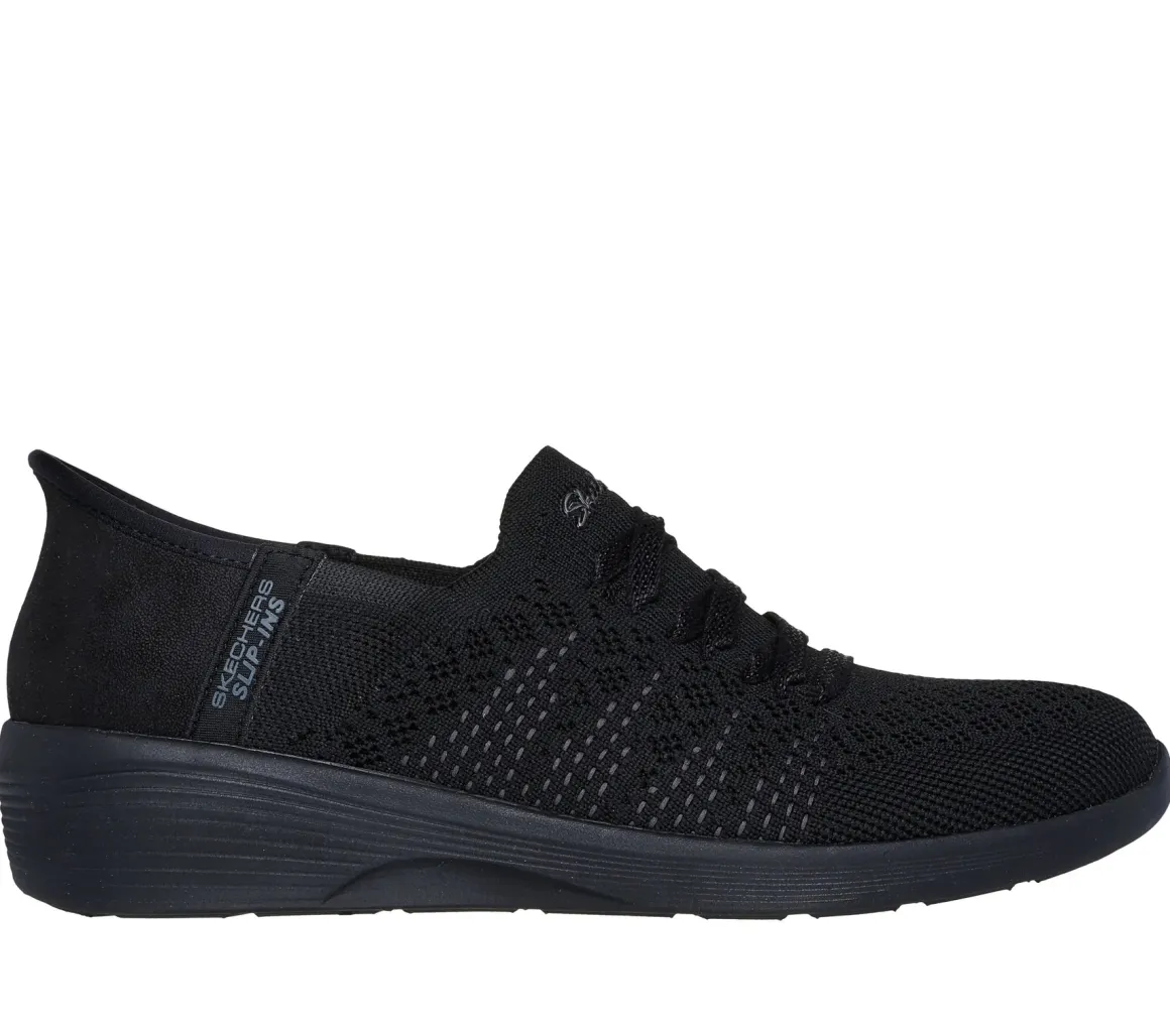 Ces souliers Slip-ins® de Skechers pour femmes combinent confort, praticité et style au quotidien. Grâce à leur conception Stretch Fit® et à l’empeigne en tricot extensible, ils épousent le pied comme une chaussette. Les lacets extensibles fixes No-Tie Fit™ permettent un enfilage rapide, soutenu par le coussinet de talon exclusif Heel Pillow™. La semelle intérieure Skechers Air-Cooled Memory Foam® procure un amorti respirant, et le tout est lavable à la machine et 100 % végétalien.