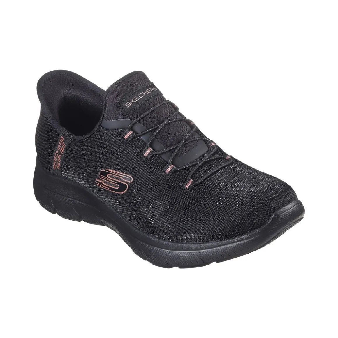 Les chaussures à enfiler Skechers Mains libres Slip-ins® pour femmes sont parfaites pour celles qui recherchent un mélange de style, confort et commodité. Conçues pour être pratiques, elles permettent de les enfiler et de les retirer sans effort, tout en offrant un ajustement parfait grâce aux lacets extensibles fixes. L’empeigne en maille étincelante ajoute une touche de glamour et assure une bonne ventilation, tandis que la semelle intercalaire amortissante procure un confort optimal à chaque pas.