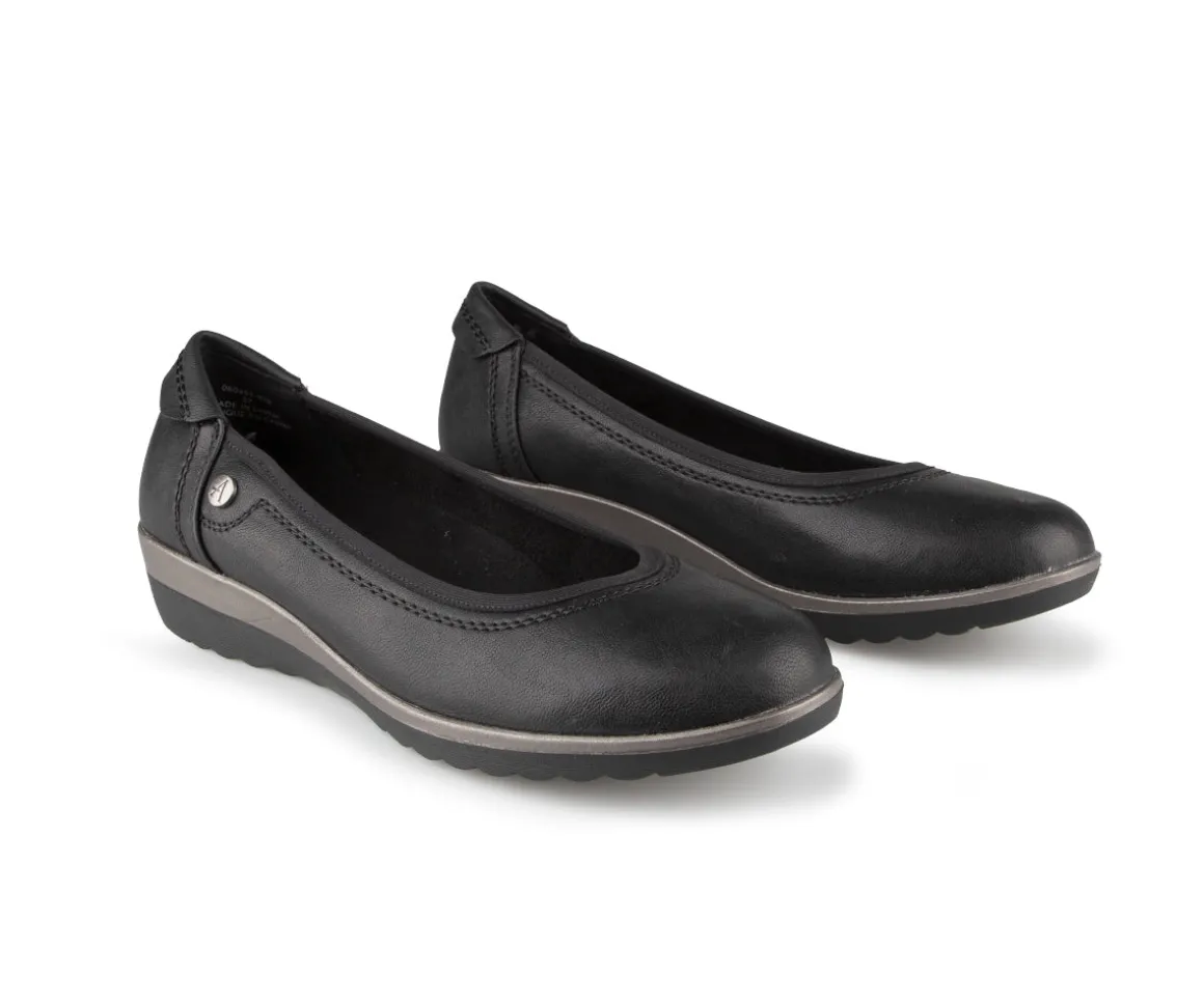Ces ballerines Alberto pour femmes combinent confort et élégance avec une semelle à talon compensé. L’empeigne en cuir synthétique est associée à une doublure en microfibre pour une douceur accrue. La semelle intérieure amovible et la semelle extérieure en PU garantissent un confort optimal et une durabilité durable.