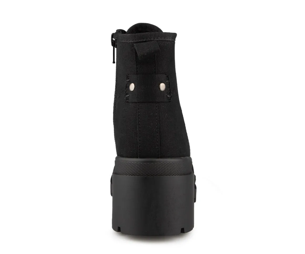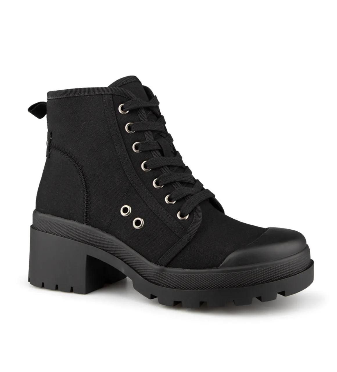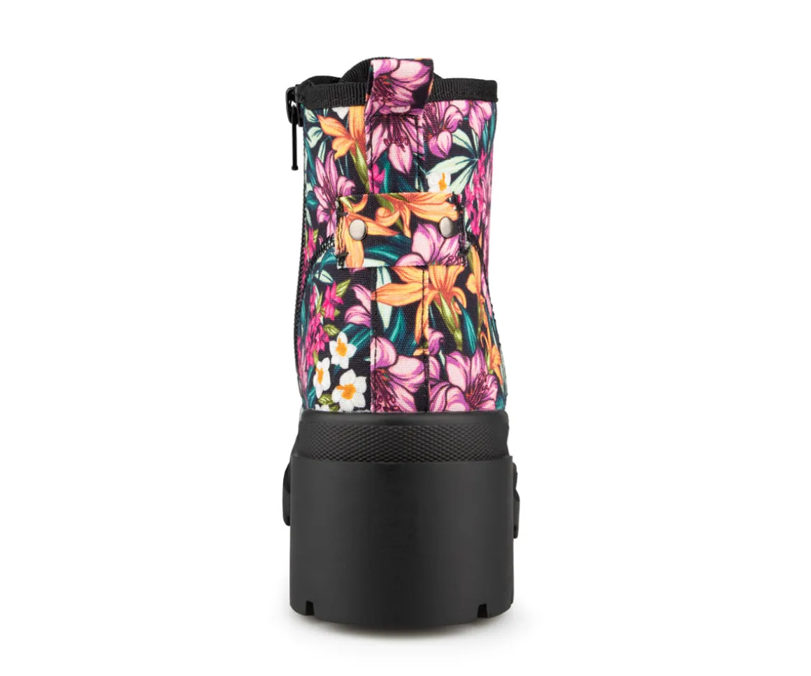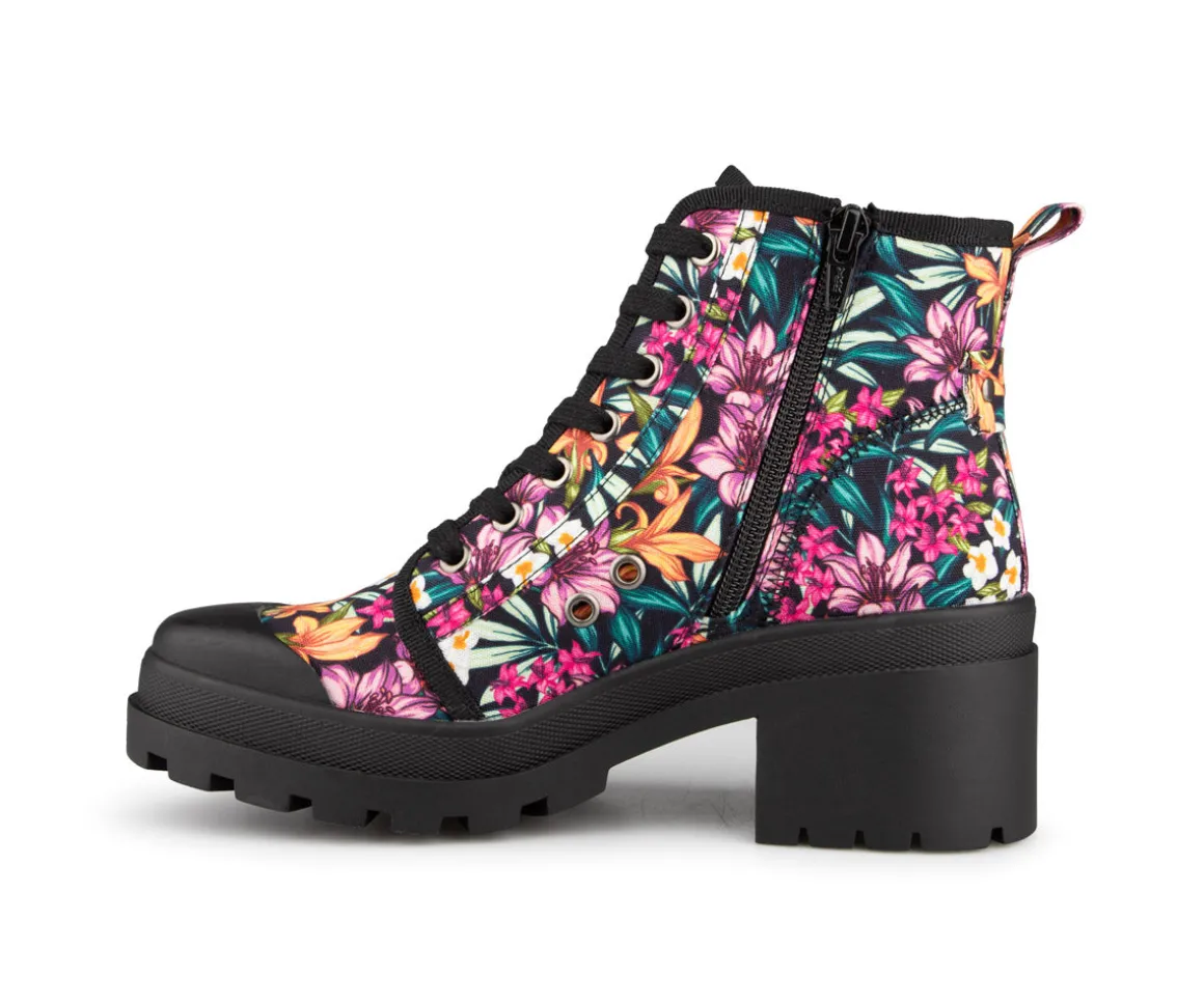 Bottillons Alberto pour femmes en toile, lacés avec un talon bloc et une fermeture éclair intérieure. Disponible dans deux couleurs (noir et motif de fleurs).