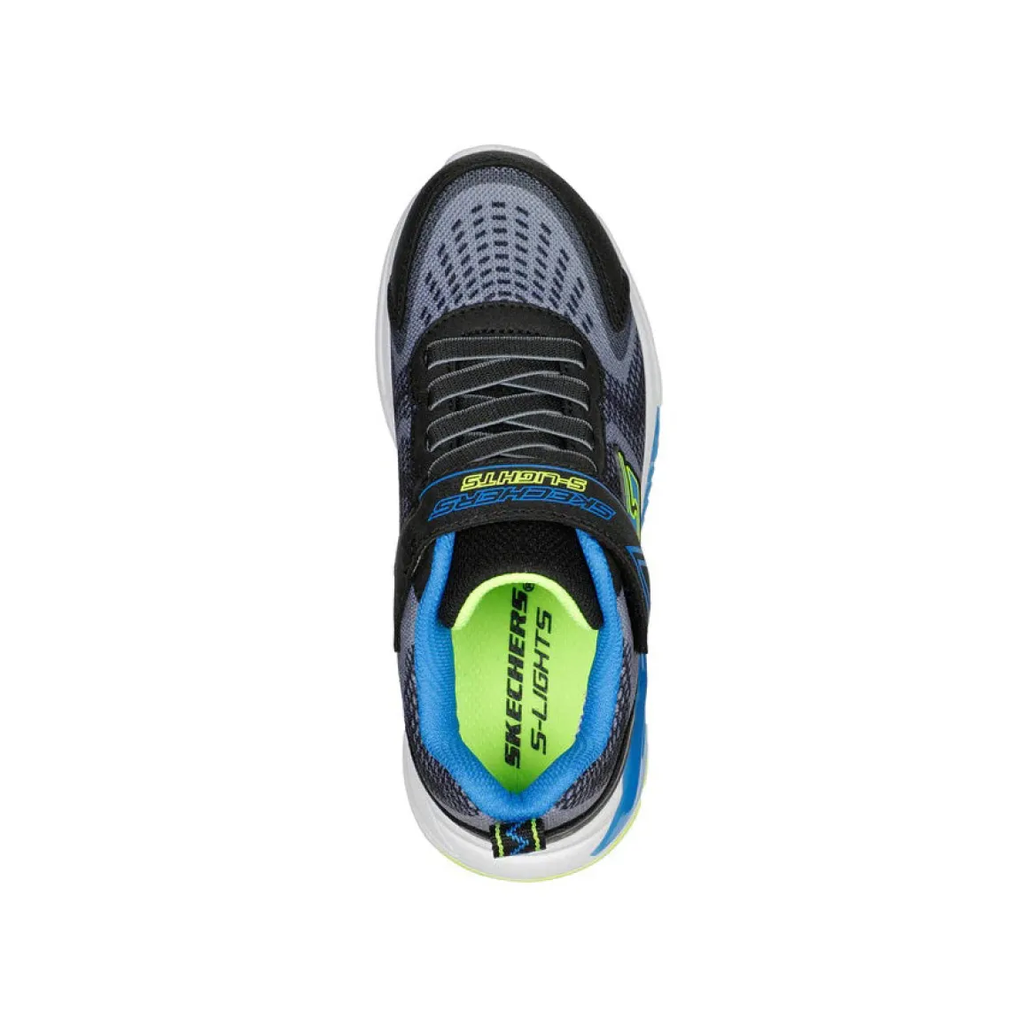 Avec Skechers S-Lights®: Tri-Namics, transformez le plaisir en un éclair. Cette conception sportive légère en maille et synthétique avec des lacets extensibles et une semelle intermédiaire lumineuse. Fermeture simple avec un bouton marche/arrêt.
