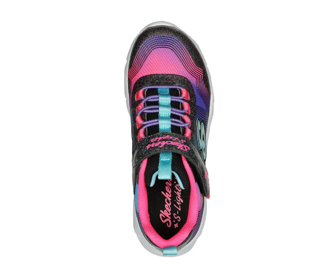 Chaussures lumineuses Skechers pour filles avec velcro réglable et lacets extensible. Votre enfant se démarquera avec des couleurs de l’arc-en-ciel.