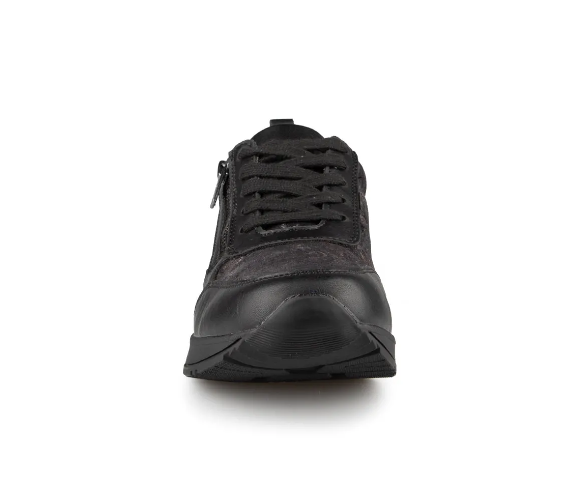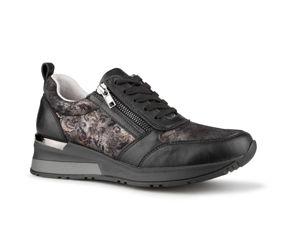 Ces souliers Ultime Confort pour femmes en cuir synthétique offrent une fusion de style et de commodité, équipés de lacets et d’une fermeture éclair sur l’empeigne. Avec une largeur B, ils assurent un ajustement confortable tout en présentant un talon compensé, ajoutant une touche élégante à votre allure.