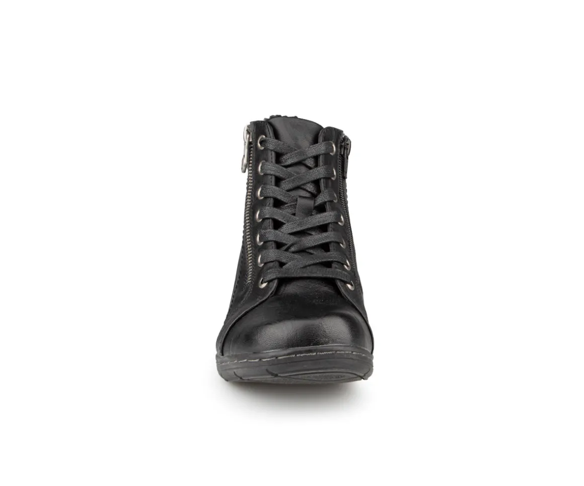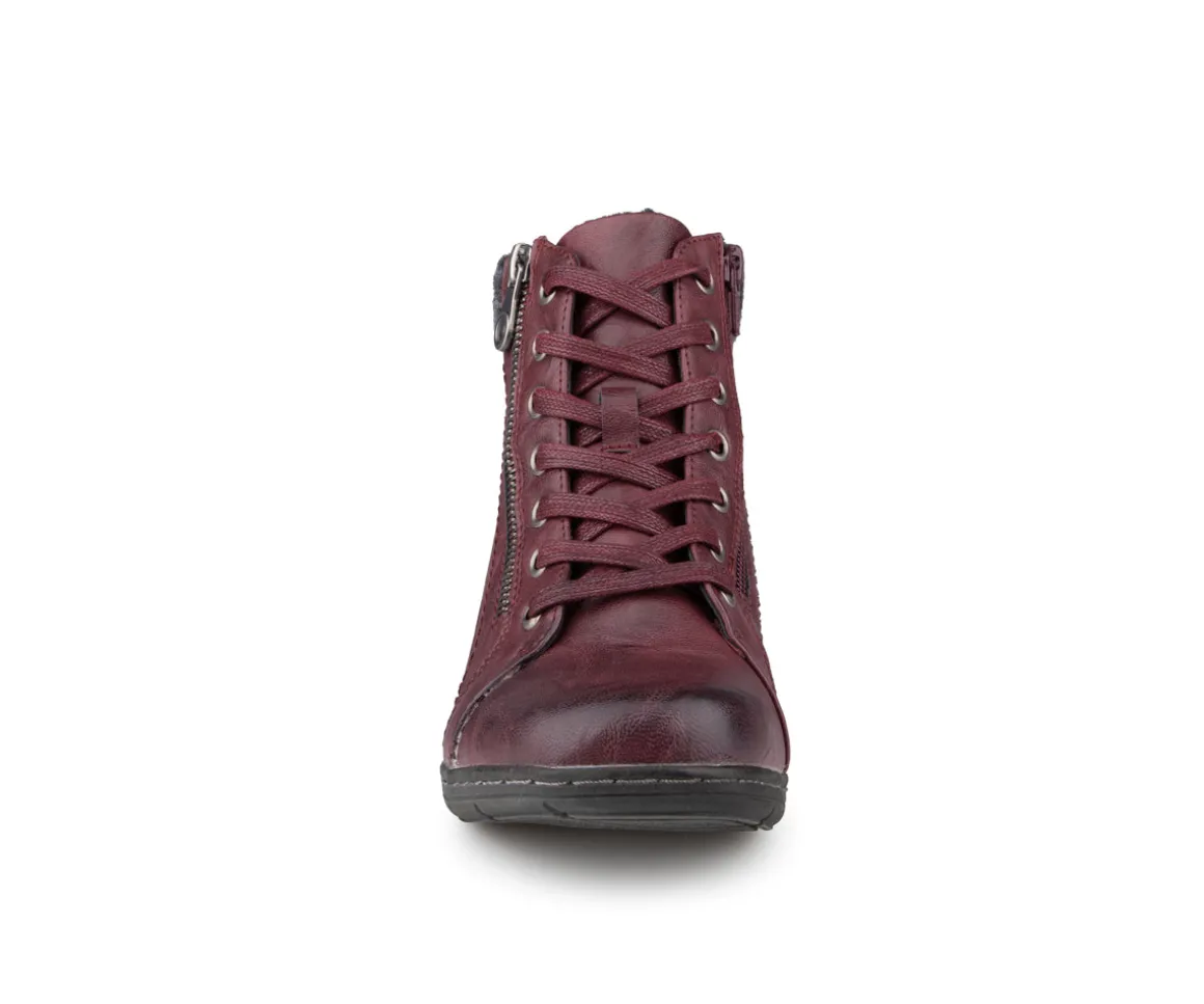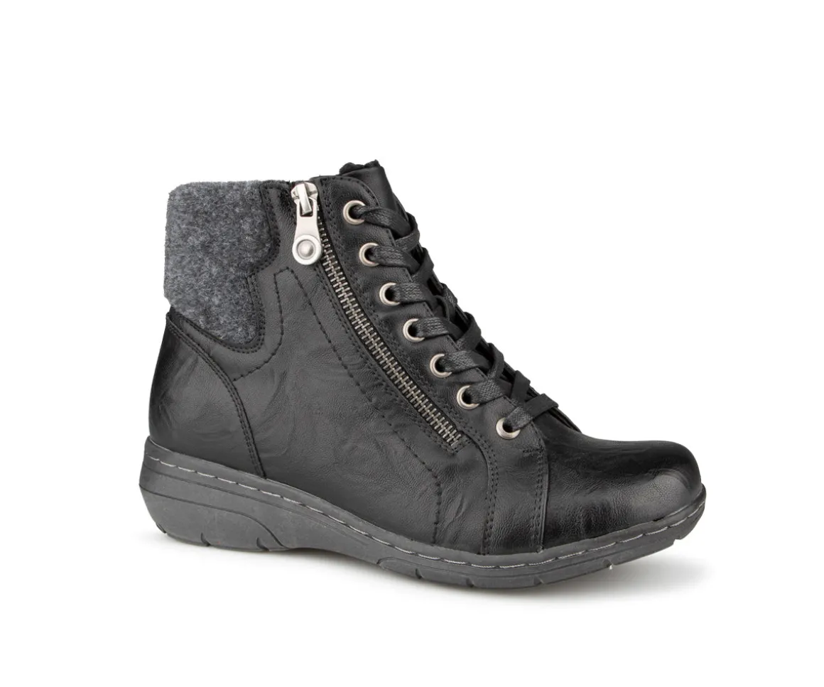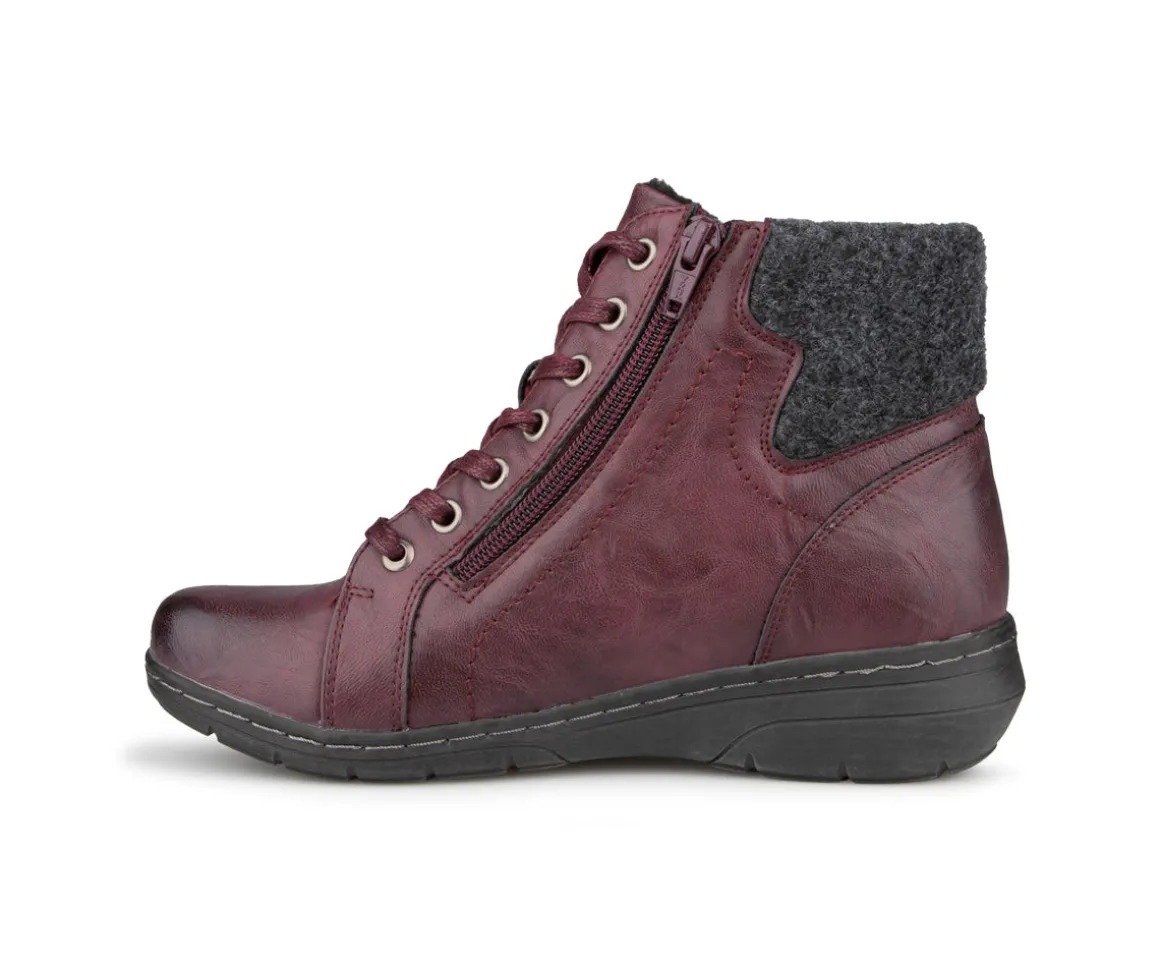 Ces bottillons courts Ultime Confort pour femmes allient praticité et style. Ils sont équipés de lacets et d’une fermeture éclair intérieure pour un enfilage facile. L’empeigne est faite de cuir synthétique et de feutre, avec un talon compensé pour une touche d’élégance. La doublure en imitation fourrure et la semelle intérieure amovible en feutre offrent un confort optimal, tandis que la semelle extérieure en TPR garantit une bonne durabilité.