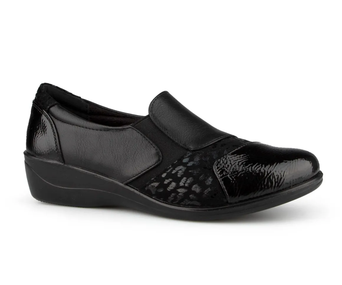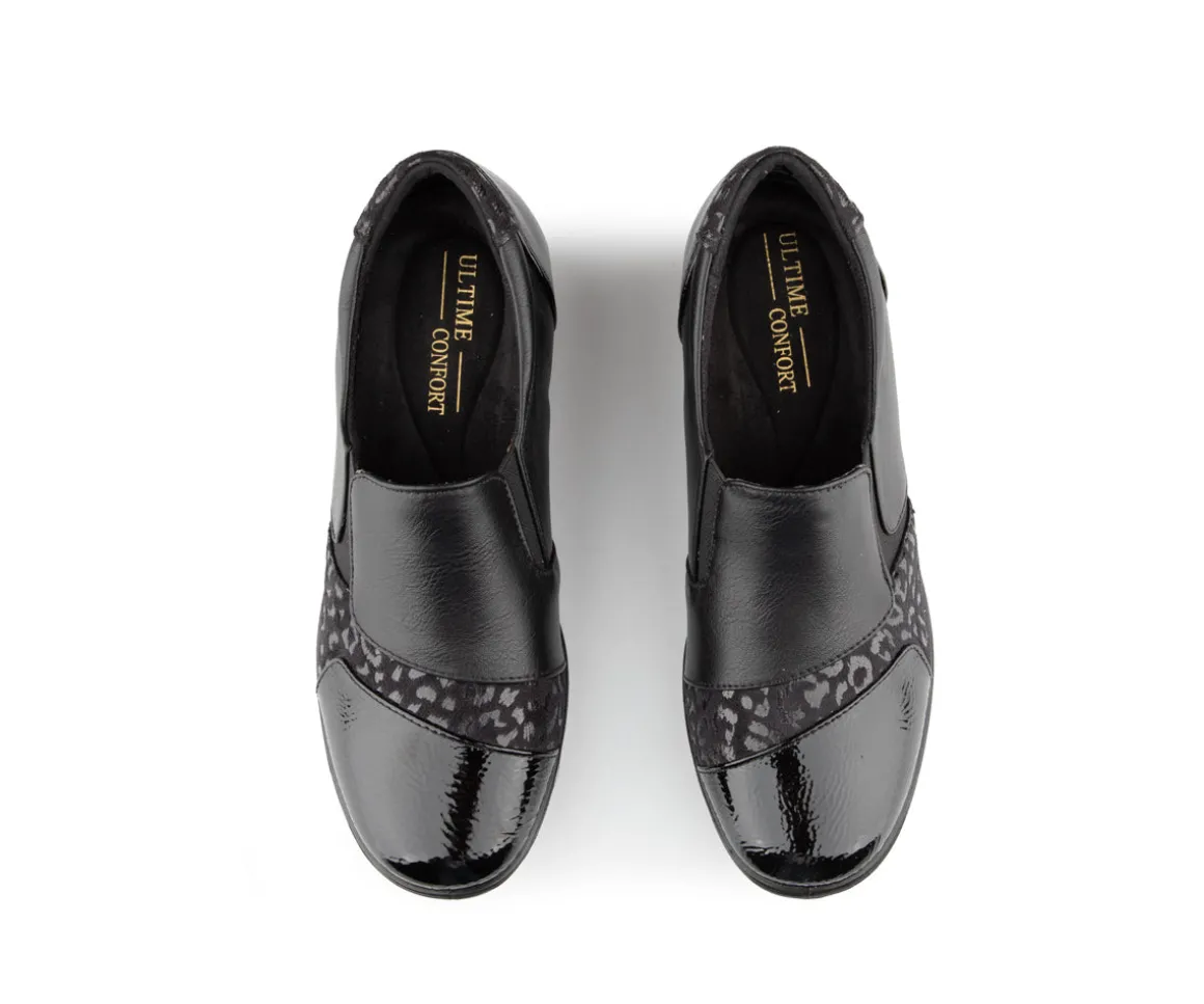 La chaussure de type flâneur Ultime Confort pour femme combine style et commodité. Elle est dotée d’une empeigne élastique et d’un talon compensé de 1.5 pouces, offrant un confort optimal tout au long de la journée.