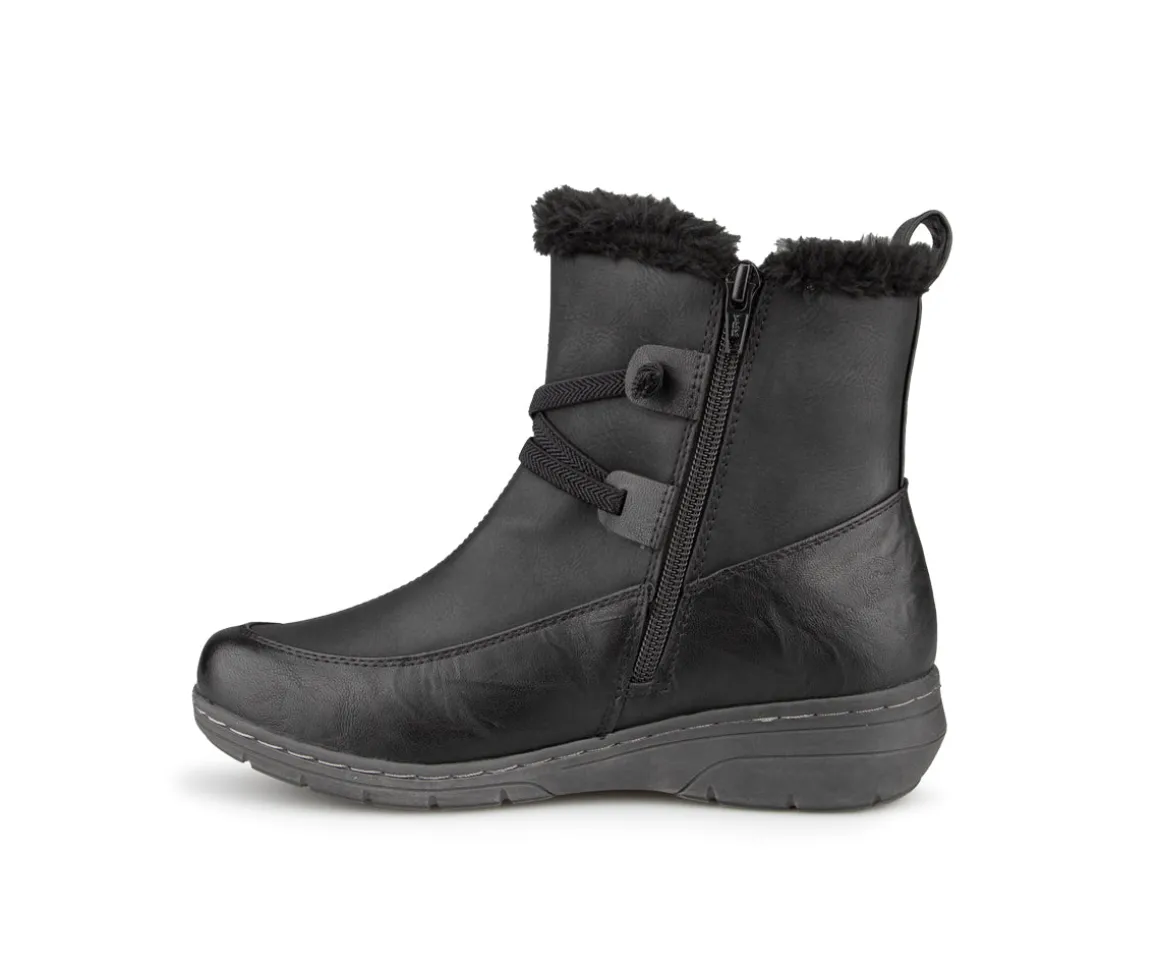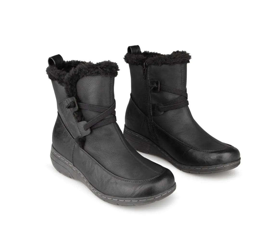 Ces bottillons courts Ultime Confort pour femmes combinent praticité et élégance. Ils sont équipés d’une fermeture éclair intérieure YKK pour un enfilage facile et d’un talon compensé pour une allure sophistiquée. La doublure en imitation fourrure assure une chaleur agréable, tandis que l’empeigne en cuir synthétique et textile offre durabilité et style. La semelle intérieure amovible et la semelle extérieure en TPR brossée garantissent un confort et une résistance supérieurs.