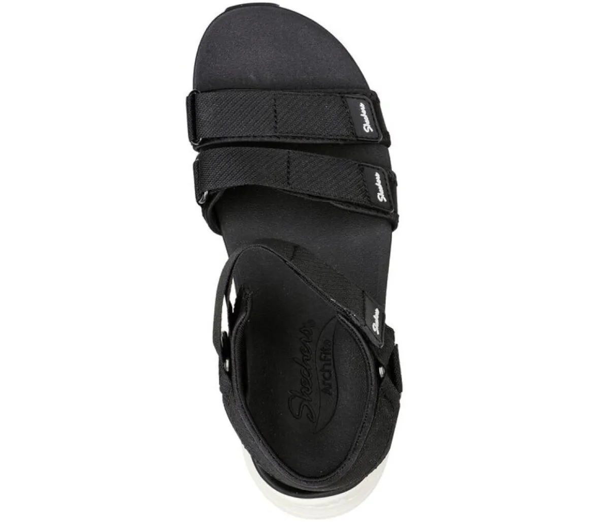 Sandale Arch fit fresh bloom de Skechers pour femme à talon compensé muni de 3 velcros sur l’empeigne. La semelle intérieure rembourrée vous offre un confort supérieur tout au long de la journée, vous permettant de profiter de vos activités sans compromis.