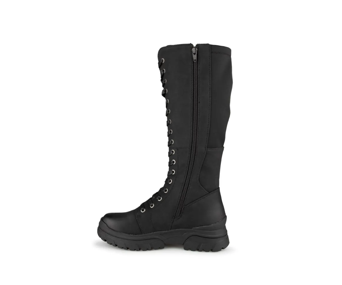 Ces bottes hautes d’hiver offrent un équilibre parfait entre style et fonctionnalité, idéales pour affronter les journées froides avec élégance. Avec un talon moyen de 2 pouces, elles ajoutent une touche de sophistication tout en garantissant le confort lors des déplacements quotidiens. La combinaison de l’empeigne en cuir synthétique et lycra assure une excellente flexibilité. La doublure en laine synthétique garde vos pieds bien au chaud, tandis que la fermeture éclair intérieure et les lacets permettent un ajustement personnalisé et un enfilage facile. La semelle extérieure en TPR offre une adhérence fiable sur les surfaces glissantes.