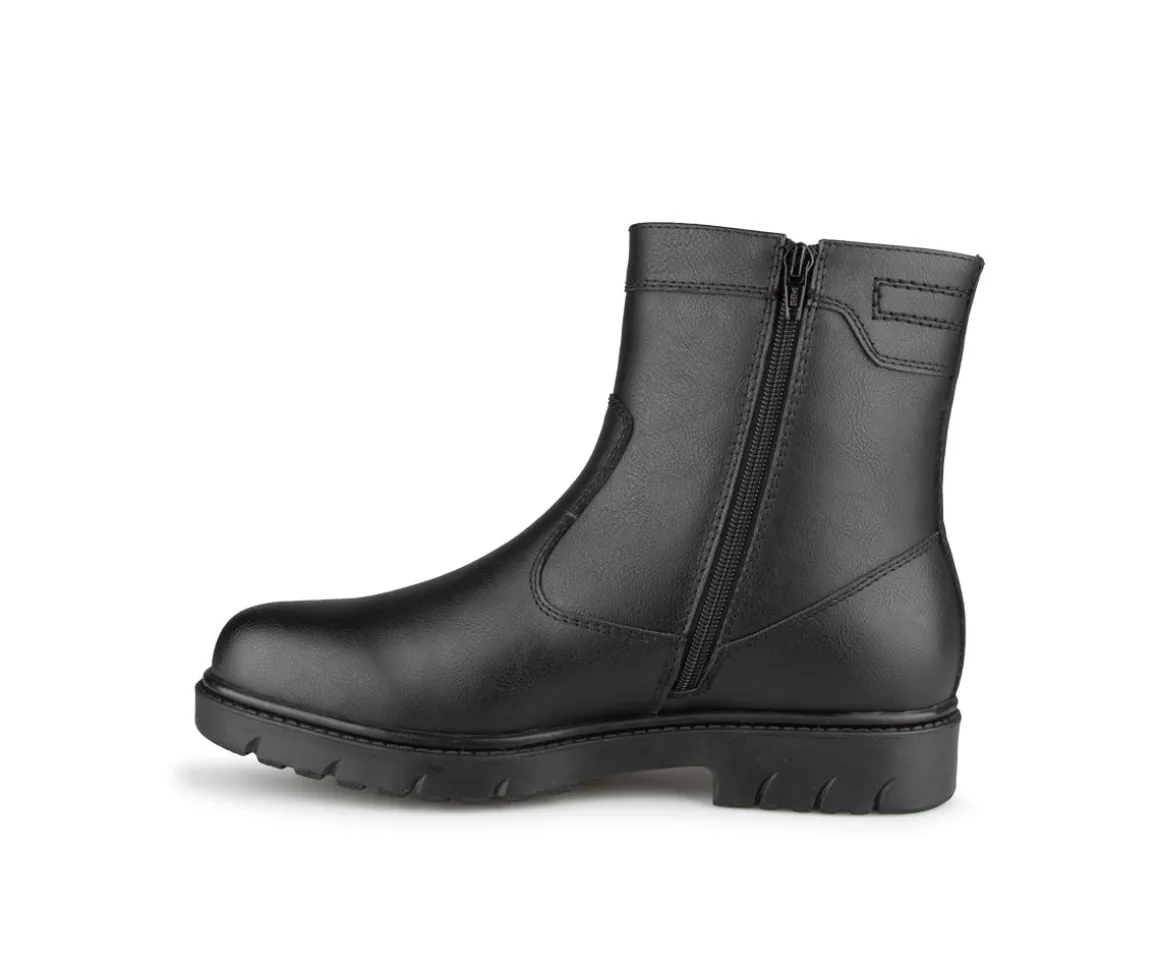 Explorez le confort et l’élégance avec nos bottes d’hiver Balec pour hommes. À talon plat, elles offrent une isolation optimale (800g) et une chaleur supplémentaire grâce à l’imitation fourrure. La semelle en caoutchouc assure une adhérence fiable, tandis que le feutre amovible procure une polyvalence toute saison.
