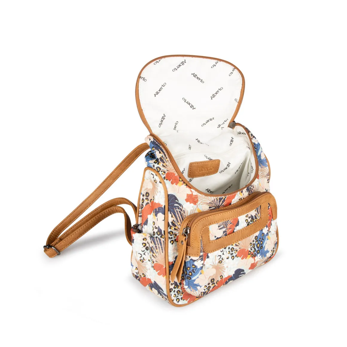 Ce sac à dos Alberto pour femmes présente un design pratique et élégant, doté d’un grand compartiment principal qui se ferme aisément à l’aide d’une fermeture éclair.