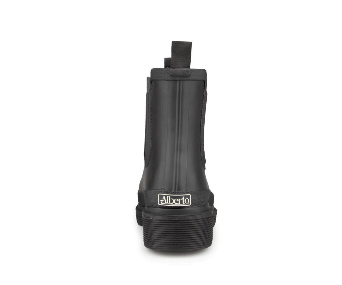 Bottes de pluie Bisaflor en caoutchouc pour femmes de marque Alberto. La doublure en coton ajoute une touche de douceur à l’intérieur, tandis que la semelle intérieure en EVA offre un niveau supplémentaire de confort pour une expérience de marche agréable. La semelle extérieure en caoutchouc assure une adhérence fiable, faisant de ces bottes un choix fonctionnel et élégant pour affronter les journées pluvieuses.