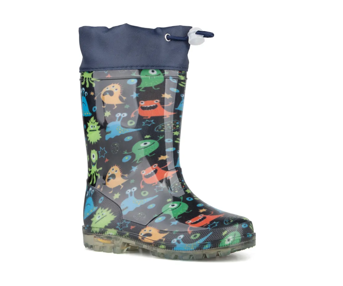 Les bottes de pluie Blue Rocky pour garçons allient fun et protection. Fabriquées en PVC durable avec collet en nylon et togo, elles sont 100 % imperméables. Les lumières aux talons ajoutent un côté ludique pour courir et sauter dans les flaques en toute sécurité.