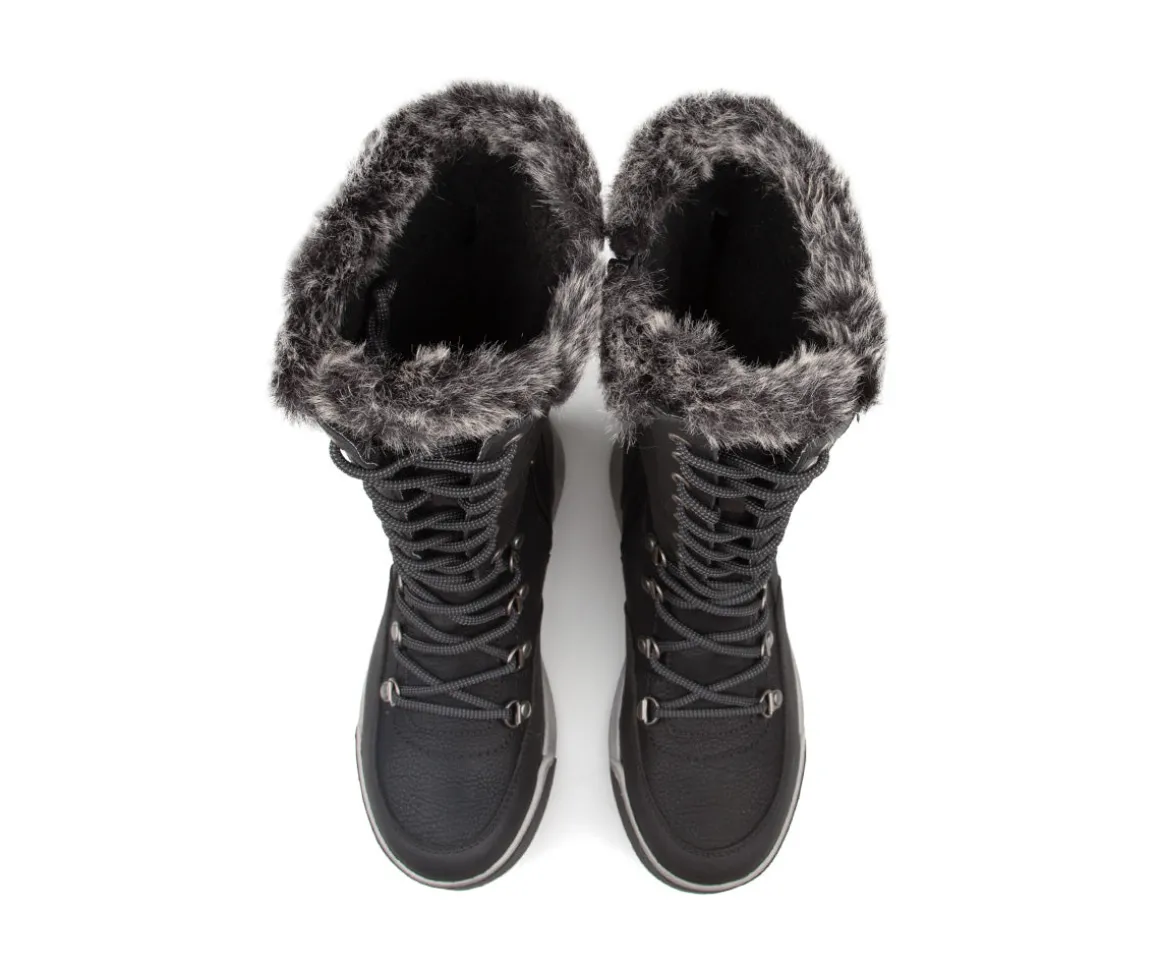 Ces bottes d’hiver hautes West Way pour femmes allient chaleur, confort et protection contre l’humidité. Fabriquées en cuir synthétique et nylon avec collet en fourrure, elles sont dotées de la membrane Aquatex imperméable pour garder vos pieds au sec. La semelle intérieure amovible en feutre assure isolation et confort, tandis que la semelle extérieure en TPR antidérapante garantit stabilité sur toutes les surfaces hivernales. Hauteur du talon : 1,5 pouces.