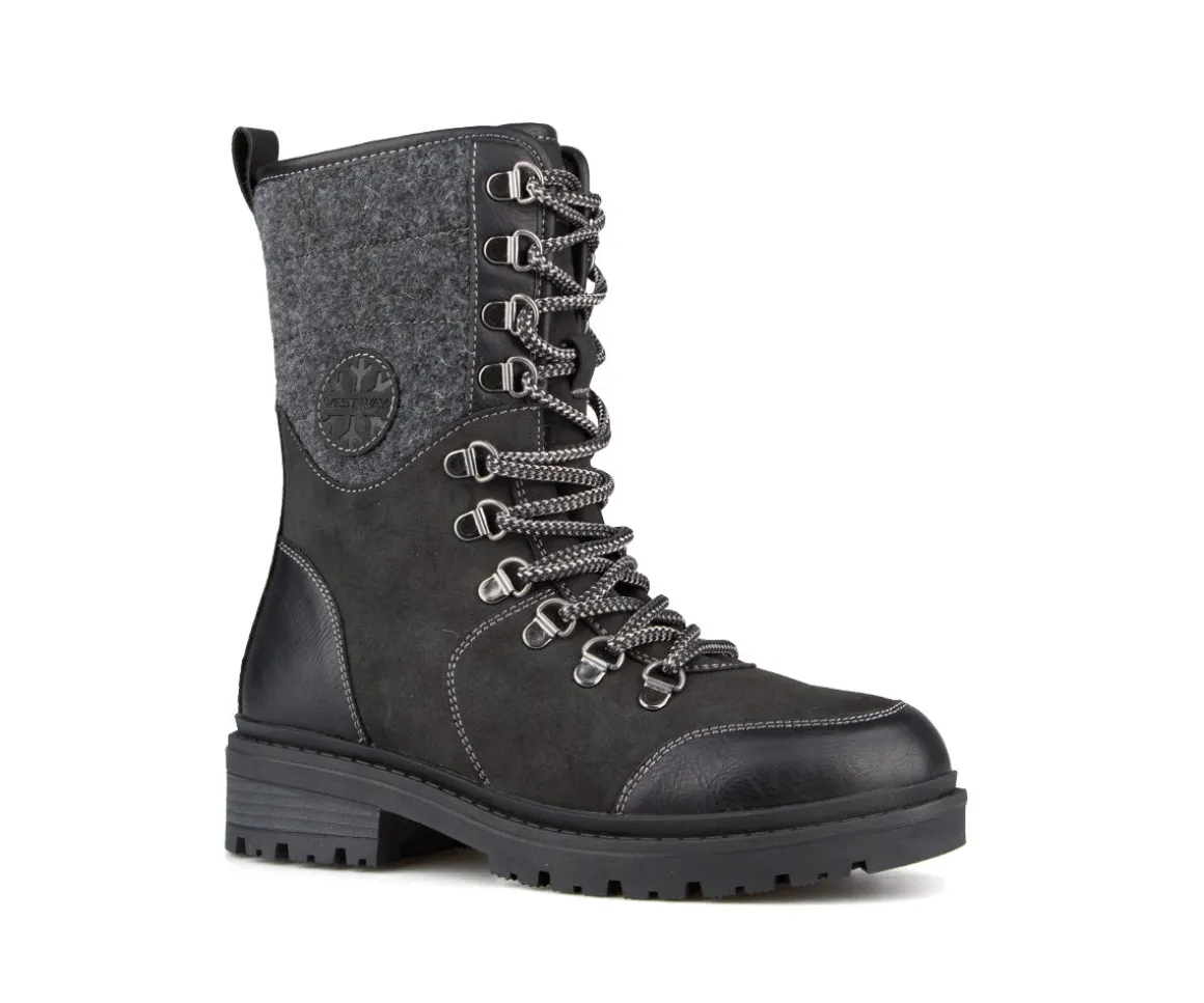 Ces bottes d’hiver West Way pour femmes offrent chaleur, confort et protection contre les intempéries. Fabriquées en PU, Nubuck et feutre, elles sont imperméables et dotées d’une fermeture éclair intérieure et de lacets pour un ajustement parfait. La doublure en laine à 50 % et la semelle intérieure en feutre assurent chaleur et confort, tandis que la semelle extérieure en caoutchouc avec Artic Grip offre adhérence et stabilité sur les surfaces glissantes.