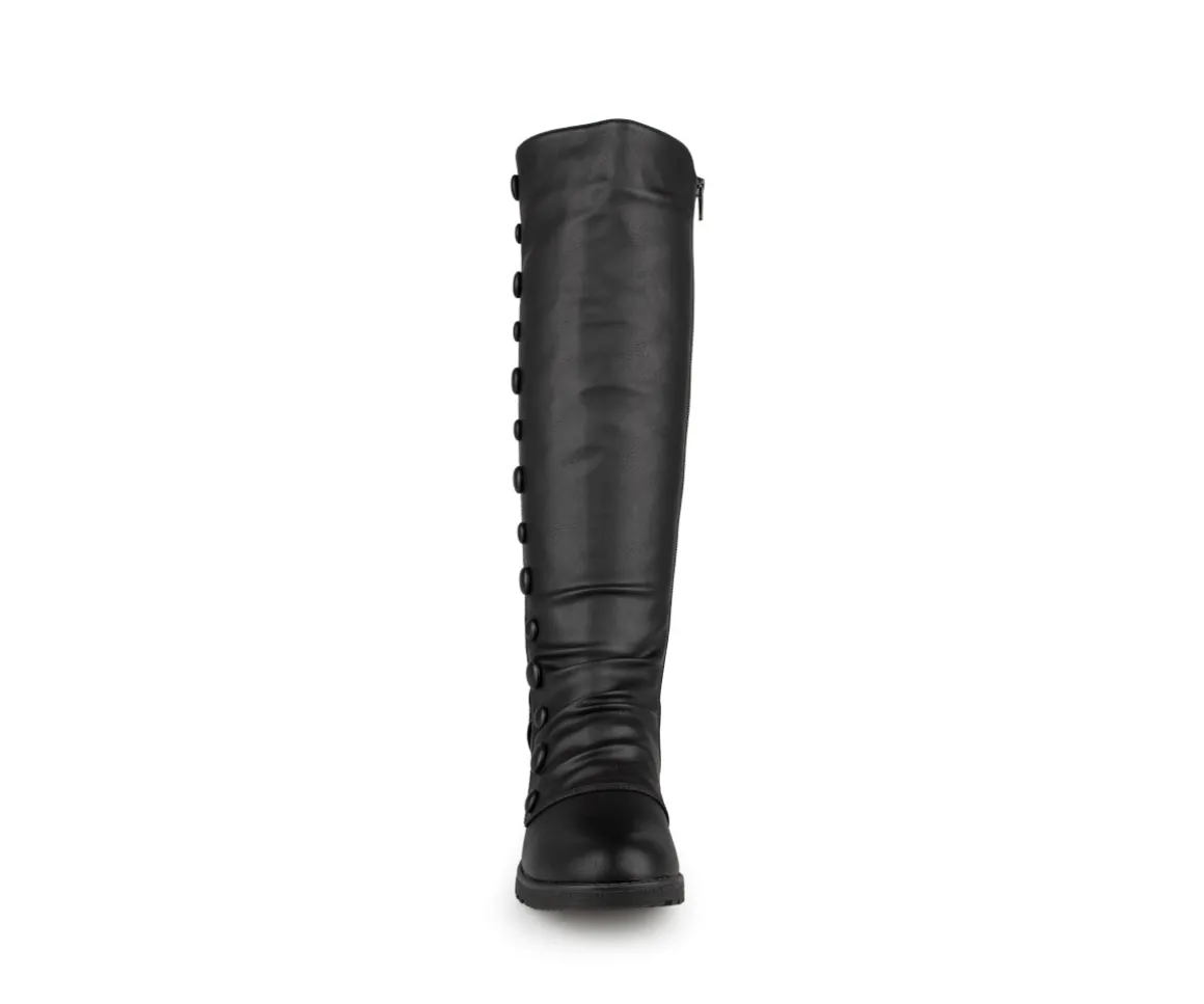 Ces bottes longues Alberto pour femmes, dotées d’un talon carré de 2 pouces sont parfaites pour une soirée en ville. La fermeture éclair intérieure facilite l’enfilage, tandis que l’empeigne en cuir synthétique, agrémentée d’un élastique à l’arrière, assure un ajustement parfait. La doublure en fourrure synthétique courte procure chaleur et confort, tandis que la semelle intérieure en feutre offre un bon amortissement.