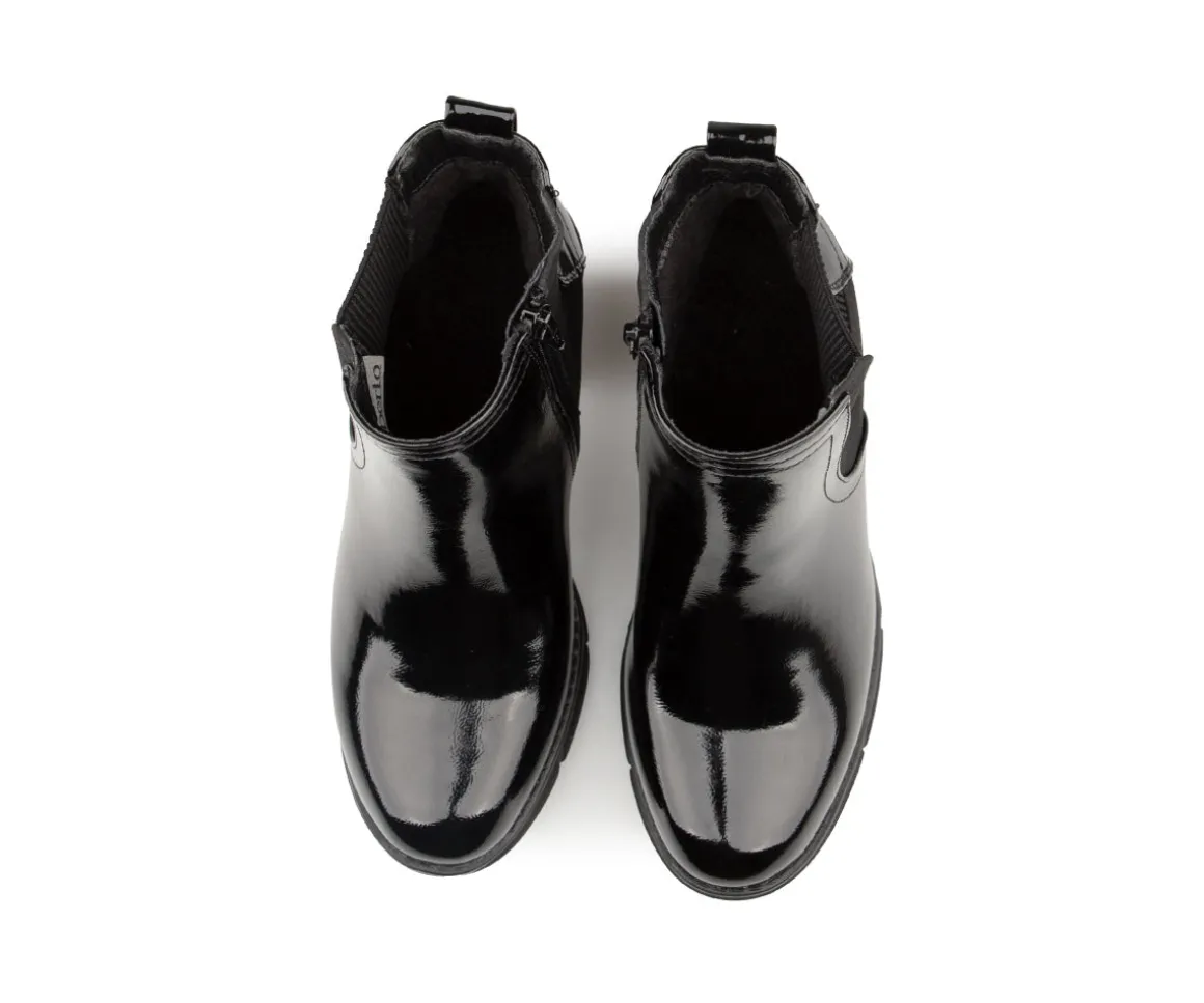 Ces bottillons à talon haut Alberto pour femmes allient élégance et confort pour vos tenues du quotidien comme des soirées. Conçus en PU vernis et matière élastique, ils offrent un ajustement impeccable et un style raffiné. Leur doublure en imitation fourrure courte et leur semelle intérieure en feutre procurent chaleur et douceur. La semelle extérieure en TPR assure une bonne adhérence et durabilité, tandis que leur talon de 3,5 pouces apporte une touche féminine et élancée.