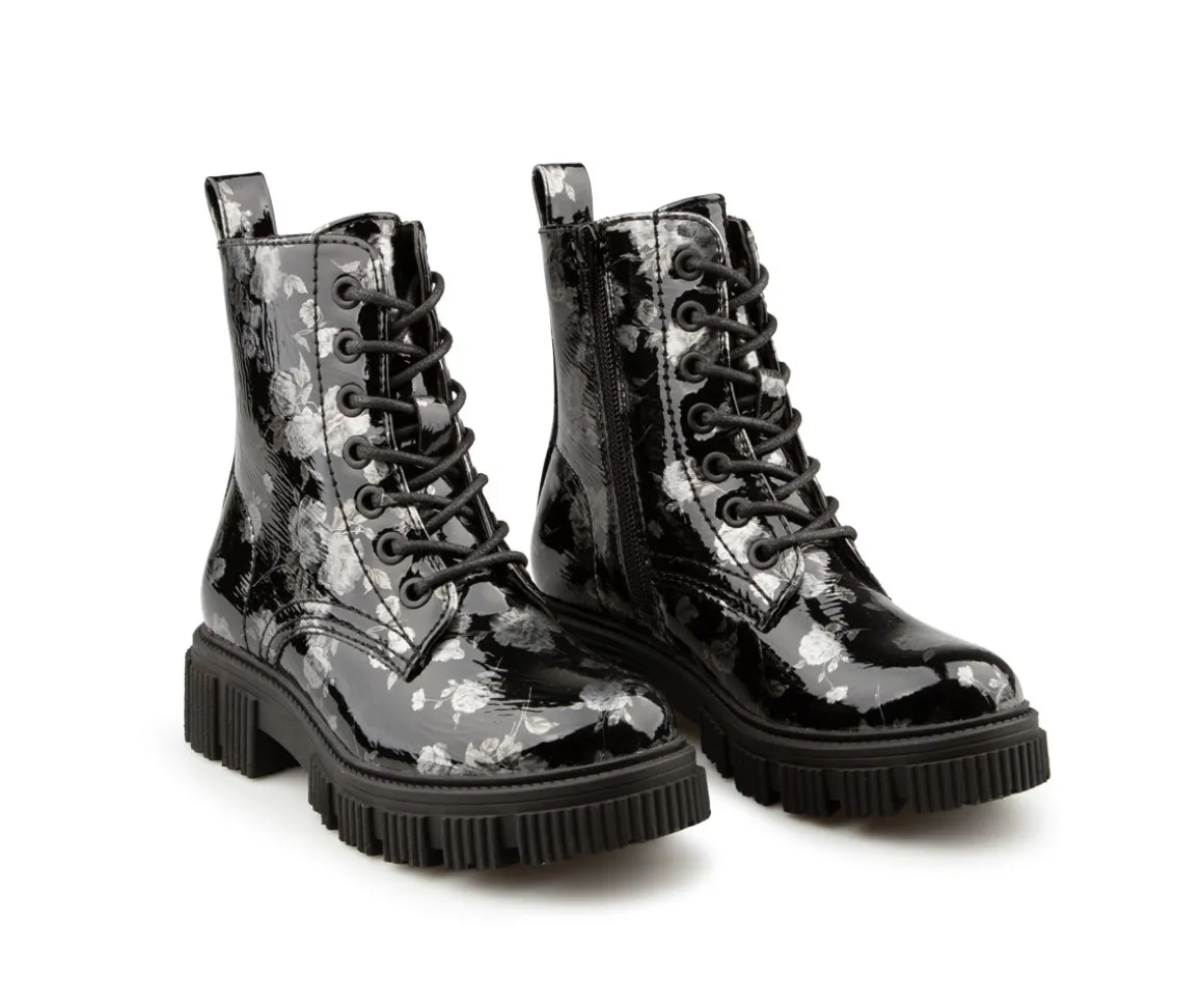 Ces bottillons Alberto pour filles offrent un look charmant avec leur imprimé fleuri et leur cuir synthétique verni. Confortables et faciles à enfiler grâce à leur fermeture éclair intérieure, ils sont parfaits pour les journées fraîches avec leur doublure en imitation de fourrure et leur semelle en feutre.