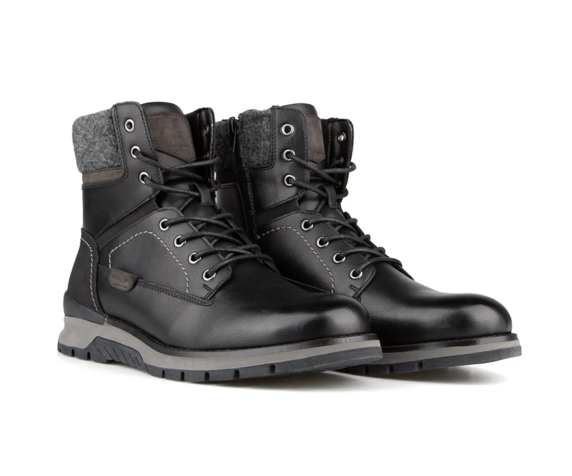Ces bottillons lacés West Way pour hommes combinent confort et robustesse pour vos activités quotidiennes. Fabriqués en PU Nubuck et feutre, ils sont dotés d’une fermeture éclair intérieure YKK pour un enfilage facile. La doublure en laine synthétique et la semelle intérieure amovible en feutre avec bon amorti offrent chaleur et confort, tandis que la semelle extérieure en caoutchouc avec Artic Grip assure adhérence et stabilité sur différentes surfaces.