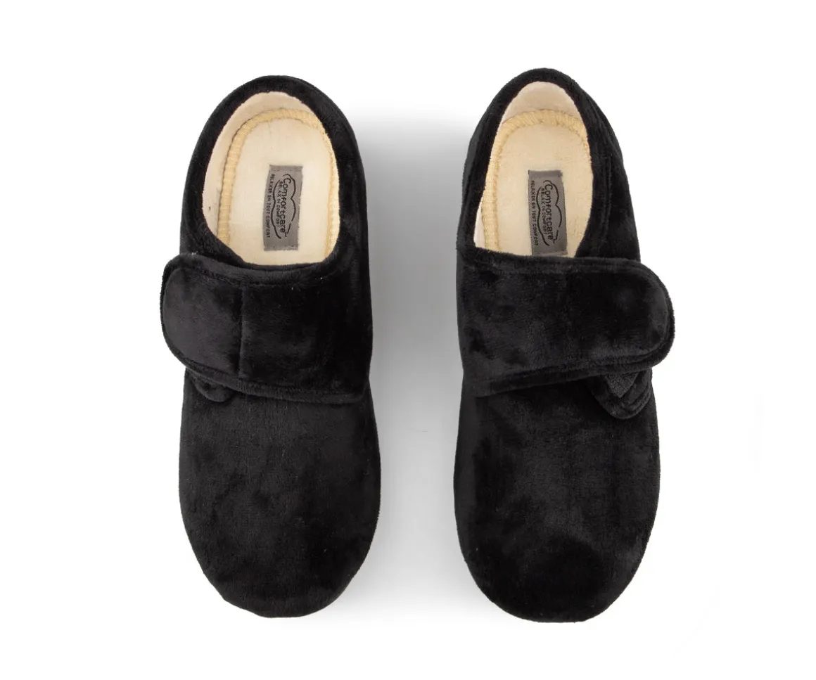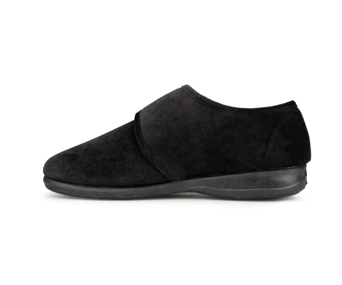 Les pantoufles Comfortcare pour hommes allient confort et praticité avec leur fermeture à velcro et leur doublure en imitation fourrure. La semelle en caoutchouc offre une bonne adhérence, parfaite pour une utilisation à l’intérieur.