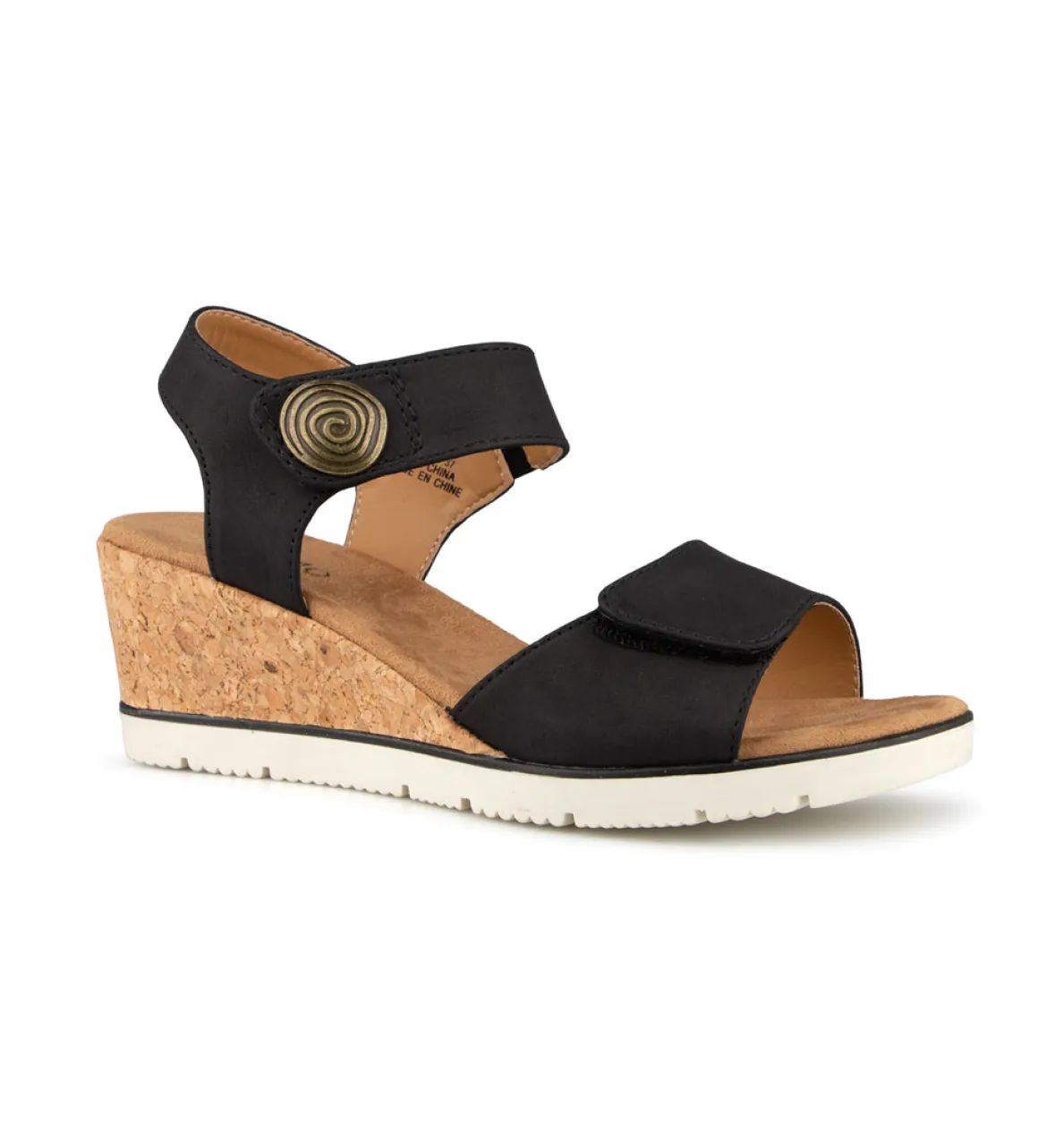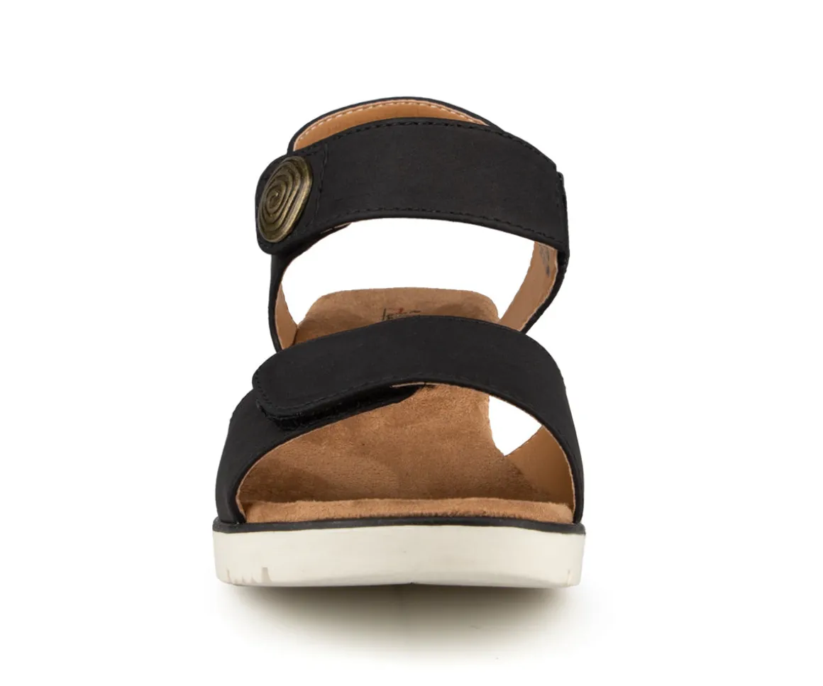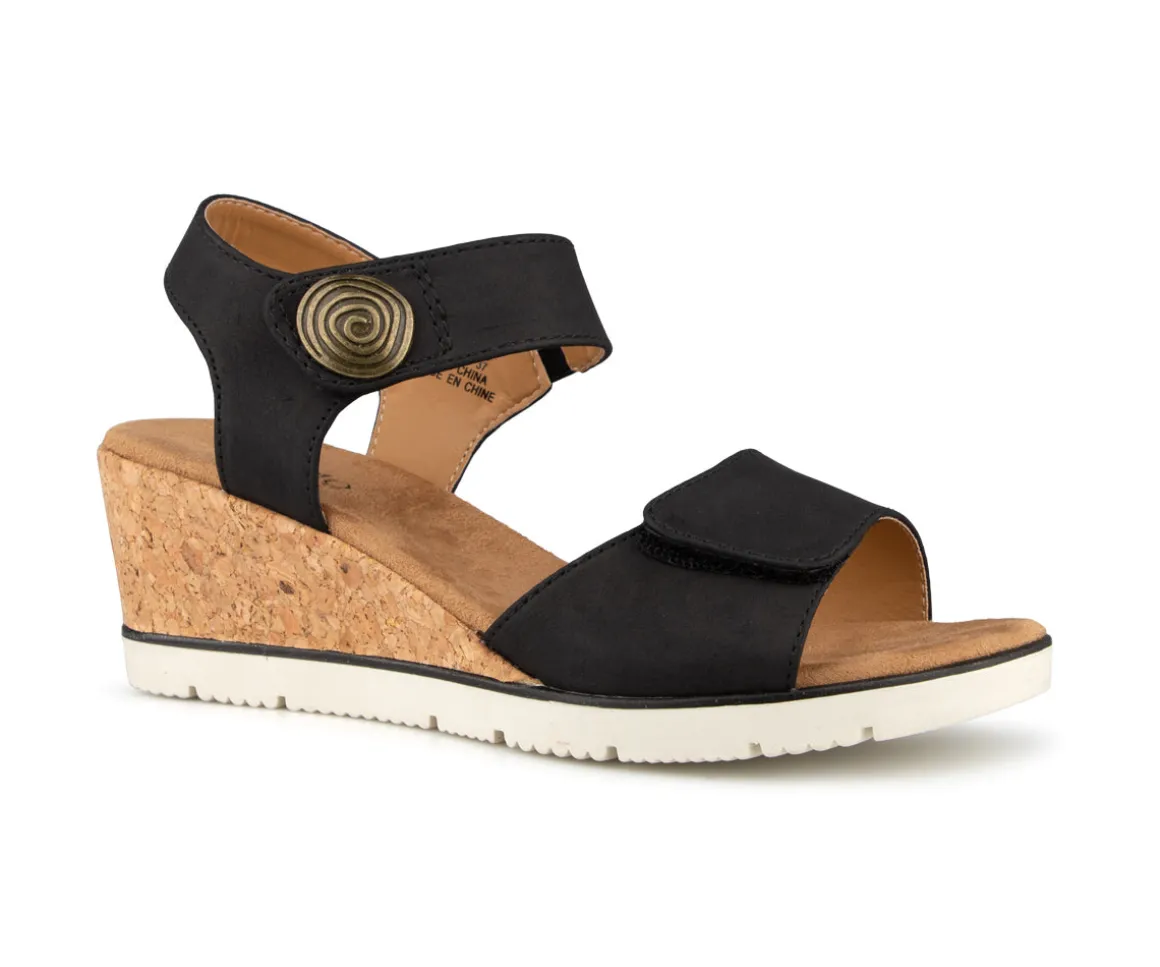 Sandale à talon compensé Alberto pour femme muni de 2 courroies à velcro. Avec un design élégant et moderne, ajoutant une touche de sophistication à chaque pas que vous faites.