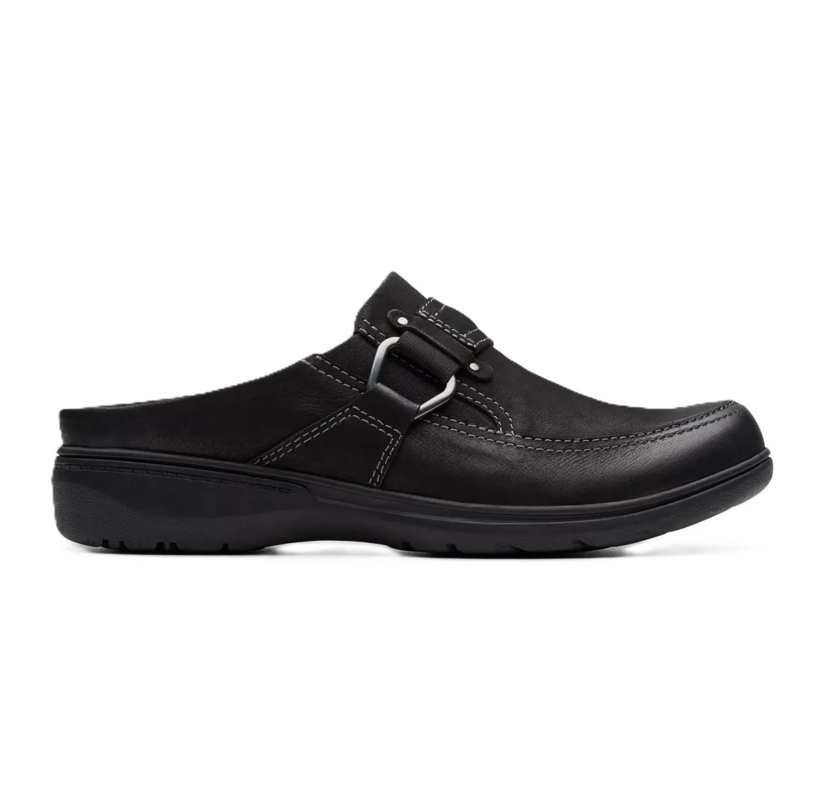 Ces chaussures à enfiler Clarks pour femmes allient élégance et facilité grâce à leur tige en nubuck noir de première qualité et leurs panneaux extensibles qui permettent un enfilage rapide. L’assise plantaire en mousse Ultimate Comfort offre un soutien durable tout au long de la journée, tandis que la semelle souple en TPR assure une excellente stabilité.