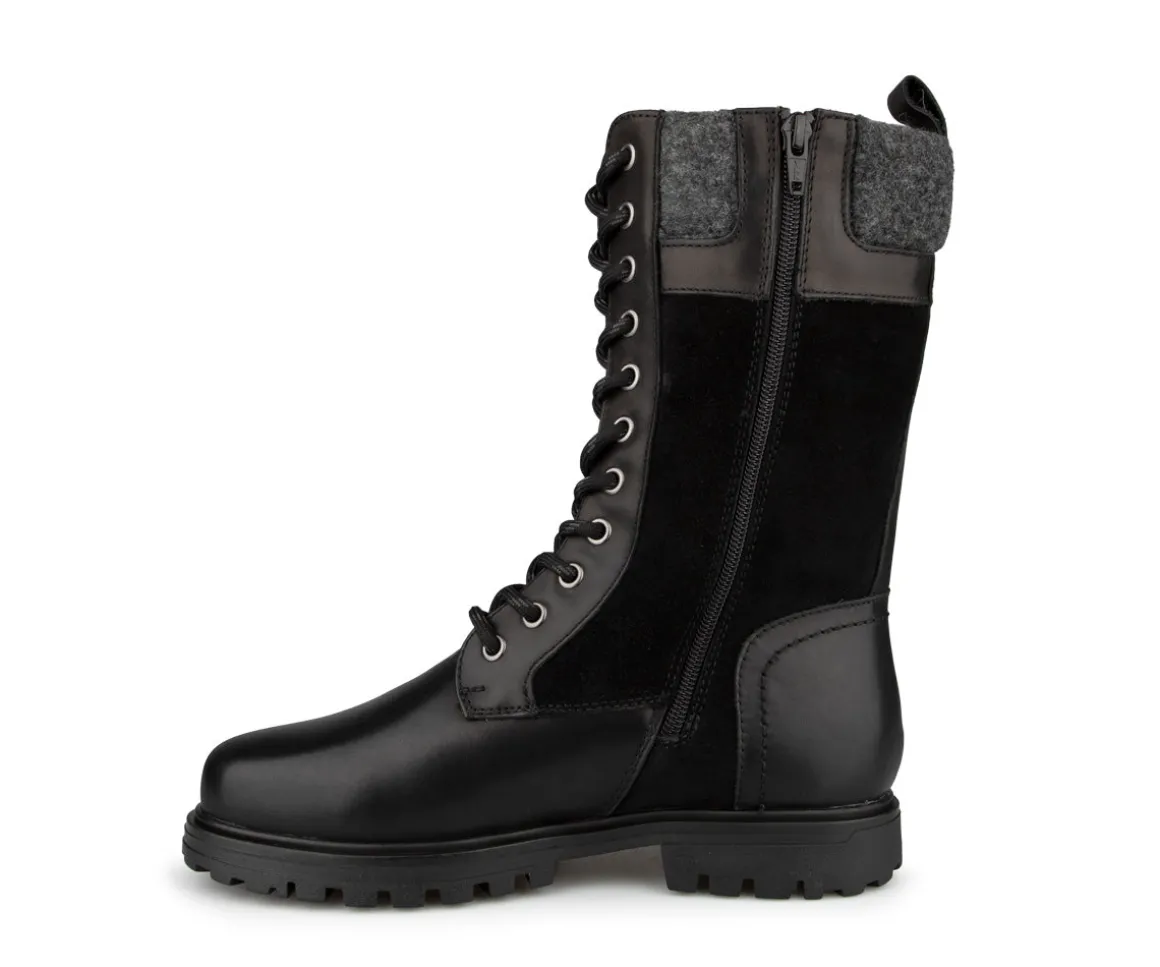 Explorez l’hiver avec style et sécurité grâce à nos bottes mi-mollet lacées pour femmes. Dotées de crampons, d’une fermeture éclair intérieure et d’une bonne isolation, ces bottes en cuir imperméable et suède offrent un confort optimal avec leur feutre intérieur amovible et coussiné.