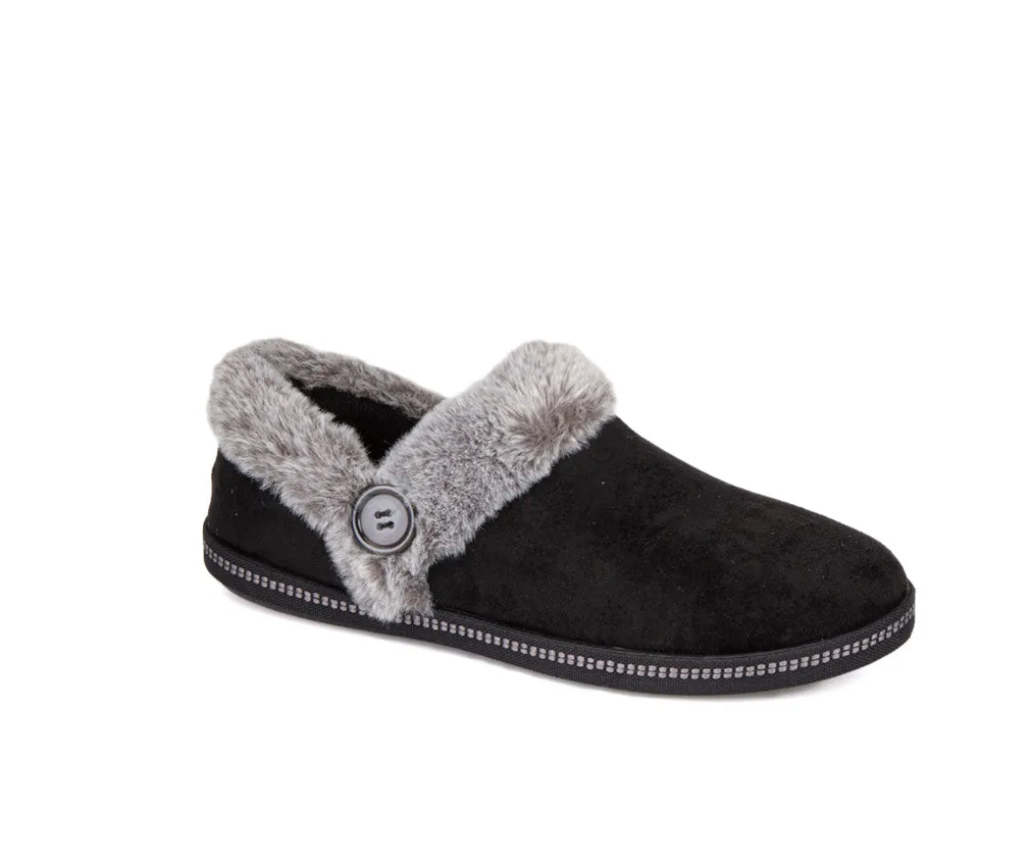 Pantoufle Cozy campire de Skechers pour femme avec imitation de fourrure et semelle en TPR.