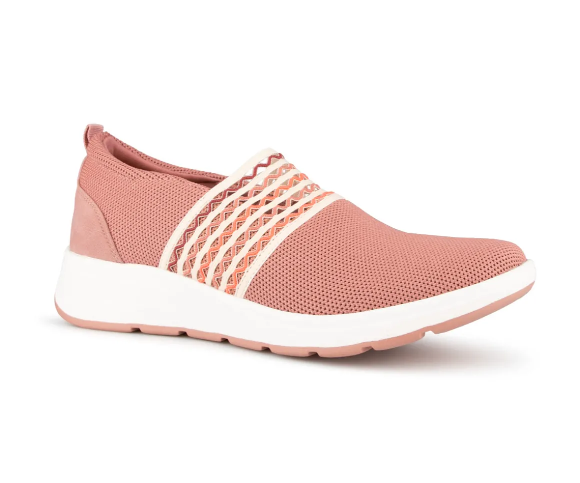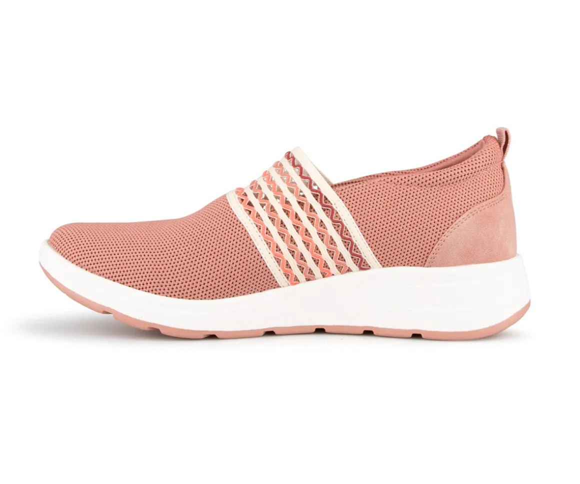 Chaussures Alberto de type flâneur pour femmes avec élastique décorative et un tissu maillé. Disponible dans deux couleurs (bleu et rose).