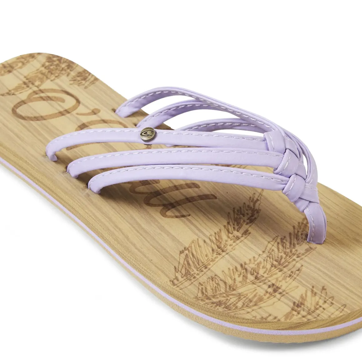 Sandales O’neill pour filles avec une semelle en bois souple, des feuilles de palmier et un logo imprimé au laser. Cette sandale est la façon idéale de compléter une tenue.